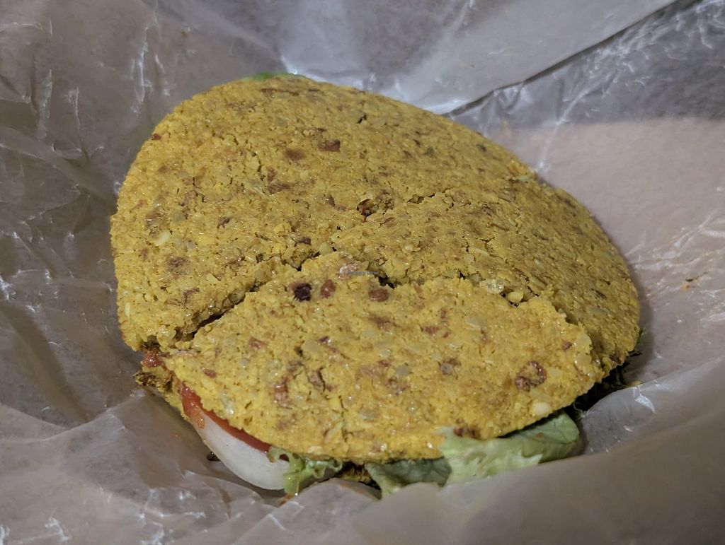 They also changed the buns used for the nyam burgers. I think they used to use the same recipe to make the flaxseed pizza bases but it’s now cashew based. I prefer the older flax seed buns. The cashew is a bit overpowering. But the pizza was nice. I ordered a half pizza with ackee and sun dried tomatoes. Very nice. Splash out on the toppings, they are worth it.