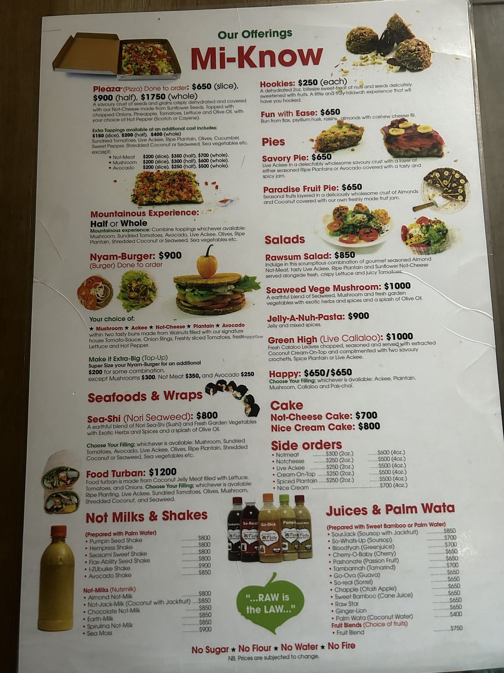 For the rawsome salad, to the burger / pizza or fun and cheese to the raw juices, this place is a must visit when I come to Jamaica. It’s a lovely quiet place for me to relax and chill and eat something fresh and alive.