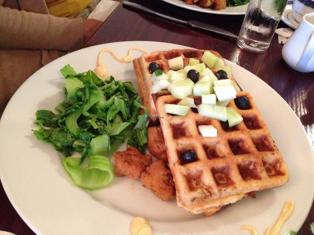 Visited Mi Lah during my stay in the city with my family. We went for Sunday brunch. I ordered the vegan omelet with mushrooms, spinach, and american cheese. SO GOOD!! The home fries are awesome and the complementary fruit hit the spot. My sister had pumpkin pancakes with blueberry butter and my mom had the tofu benedict, both of which were tasty. The staff was very friendly and welcoming, even as we barged in on them singing.
