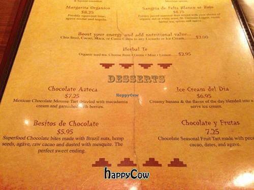 Mi Pueblo has a separate organic vegan & raw menu. This is the Dessert…