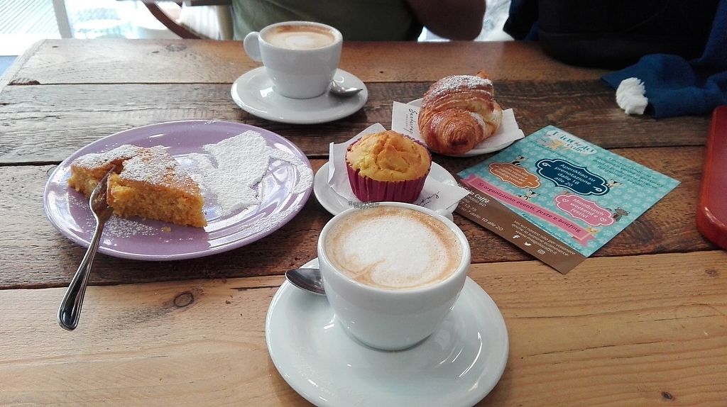 We came here for lunch. The atmosphere was really nice, cats sleeping at the windows, wooden furniture and friendly service. The food was okay, the pasta was kind of saltless and the the presentation was missing some love... but the vegan cake was amazing, also the so called „Gattoccino“ with Soymilk. So I would definitely come back for a coffee break and want to try the aperitivo as well.