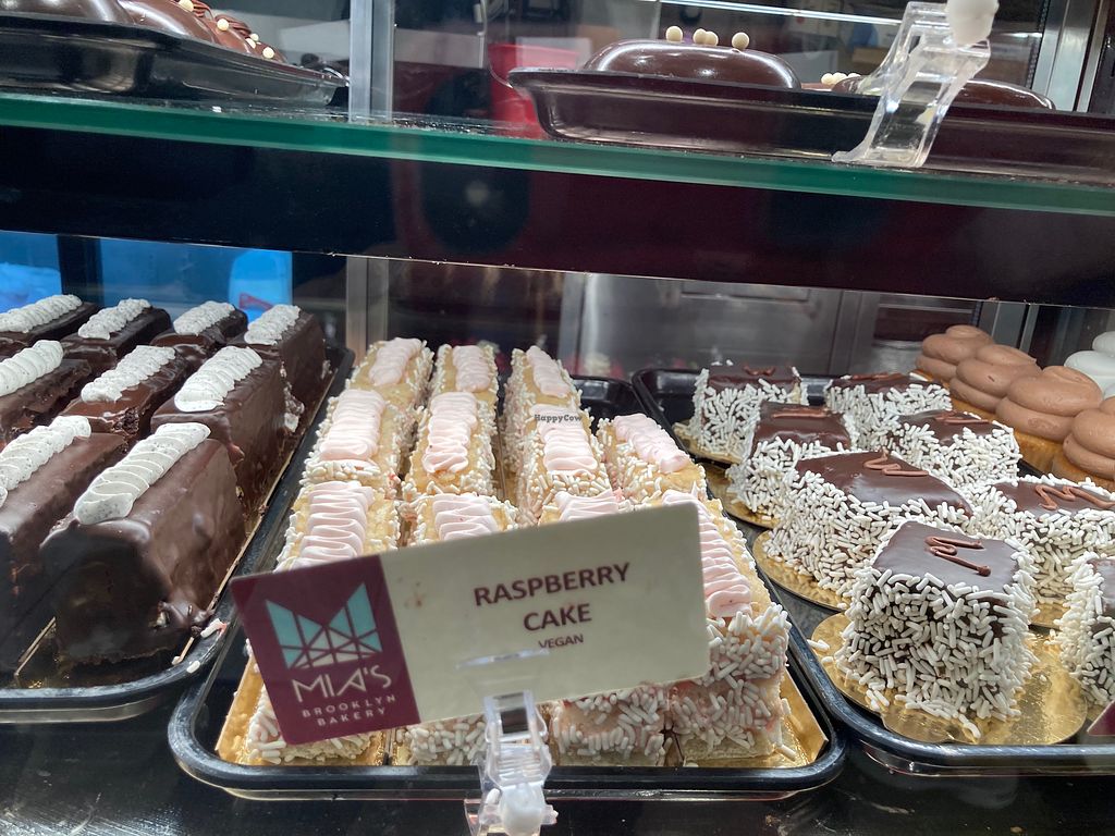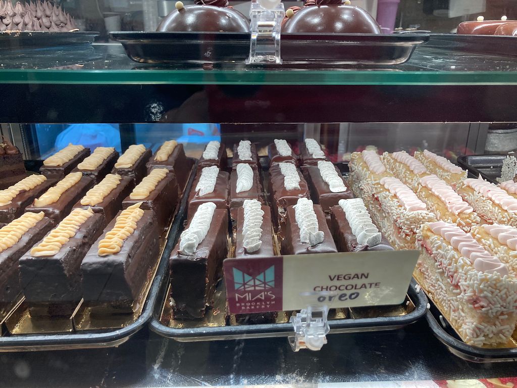 Despite its name, this place is located in Manhattan (though its flagship store is in Brooklyn). They sell various cakes, a number of which are clearly labeled as vegan. They also sell coffee with a "vegan tax" of 75 cents for plant milks. The cakes I have had by Mia are pretty good, and naturally, very high in calories. Unlike their Times Square branch, this branch on the Upper East Side of Manhattan it's not just for takeout and has plenty of nice seating .