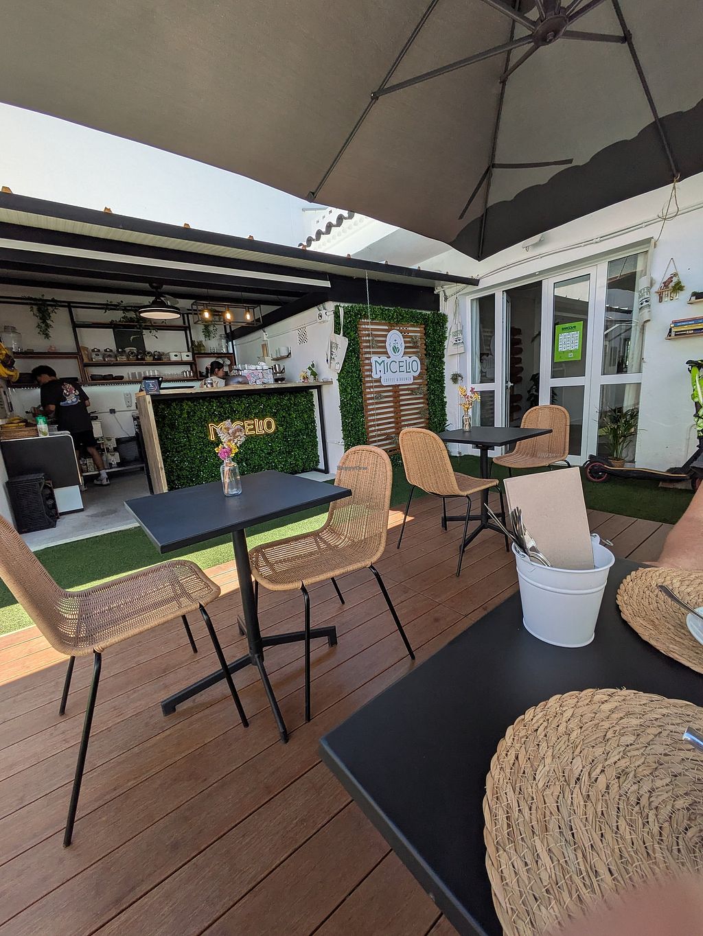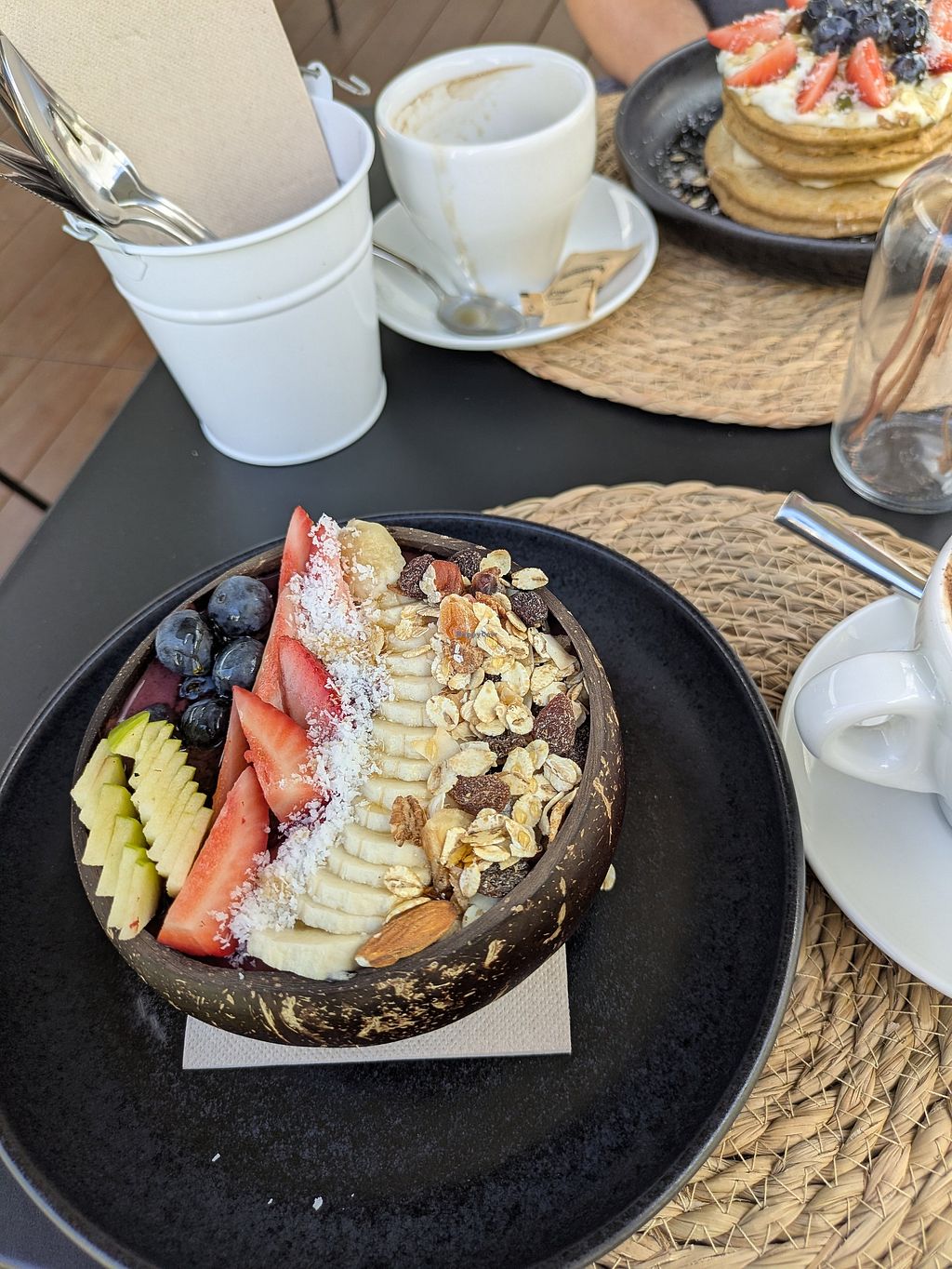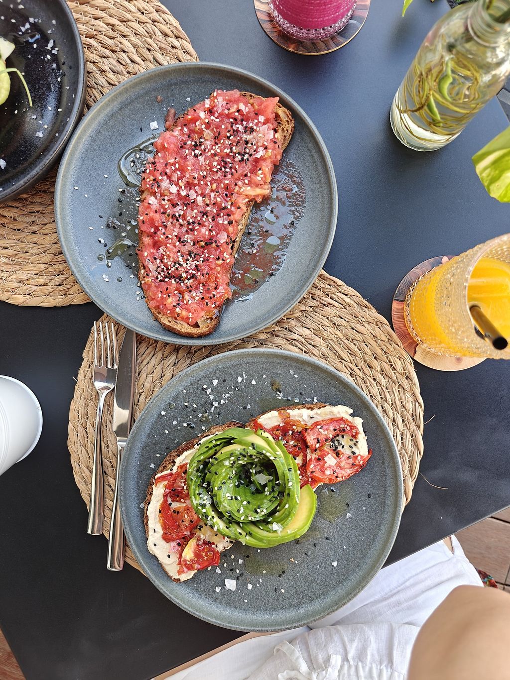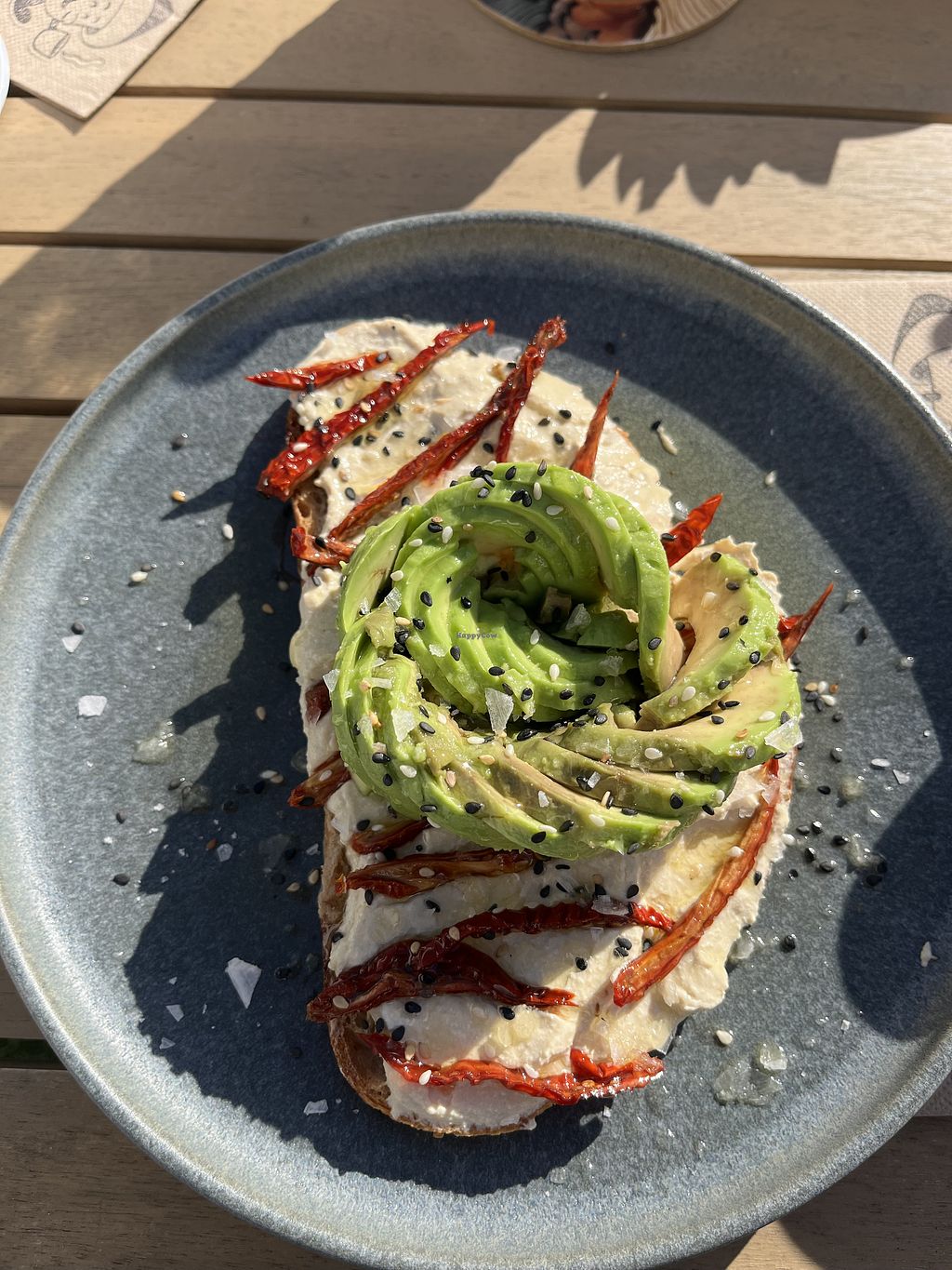 This wonderful vegetarian brunch spot is a great gain to the area, where there are no plant based venues around. The lovely owners are pet-friendly vegetarians and fully vegan aware. Apart from the standard vegan options, they adapt any dish on their menu in order to make it plant based, also gluten-free, if wanted. I had the toast with tofu spread, avocado, and marinated sun-dried tomatoes, which are homemade, alongside a ginger and mint lemonade - and I loved every bite and sip. The presentation was stunning; it felt like receiving a gift, when they brought the food to the table. I also had a cookie filled with pistachio cream for take away, which was delicious, too. The beautiful decoration emphasises how much love they put to their enterprise. The cozy patio offers a huge sunshade, which will also protect you from rain drops, and on the roof top you may enjoy sea views.