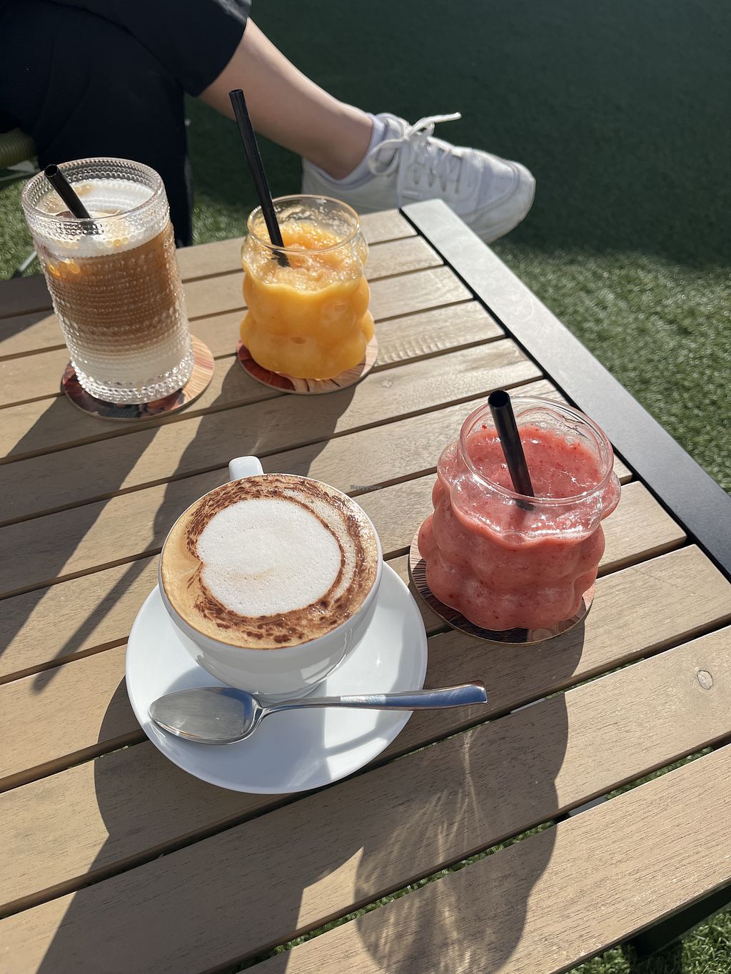 Café mit leckerem Kaffee, Smoothies und Avocado Toast. Sehr empfehlenswert. Man kann auf der Dachterrasse in der Sonne sitzen. Sehr netter Service.