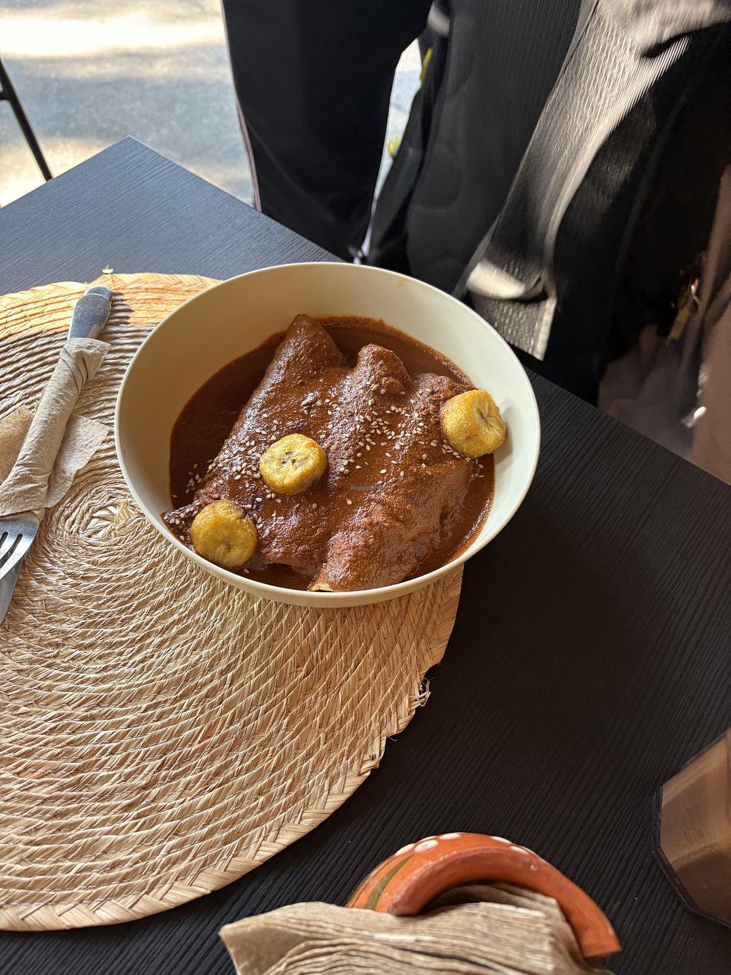 Salchicha cubierta con queso gratinado, salsa mexicana tipo guacamole …