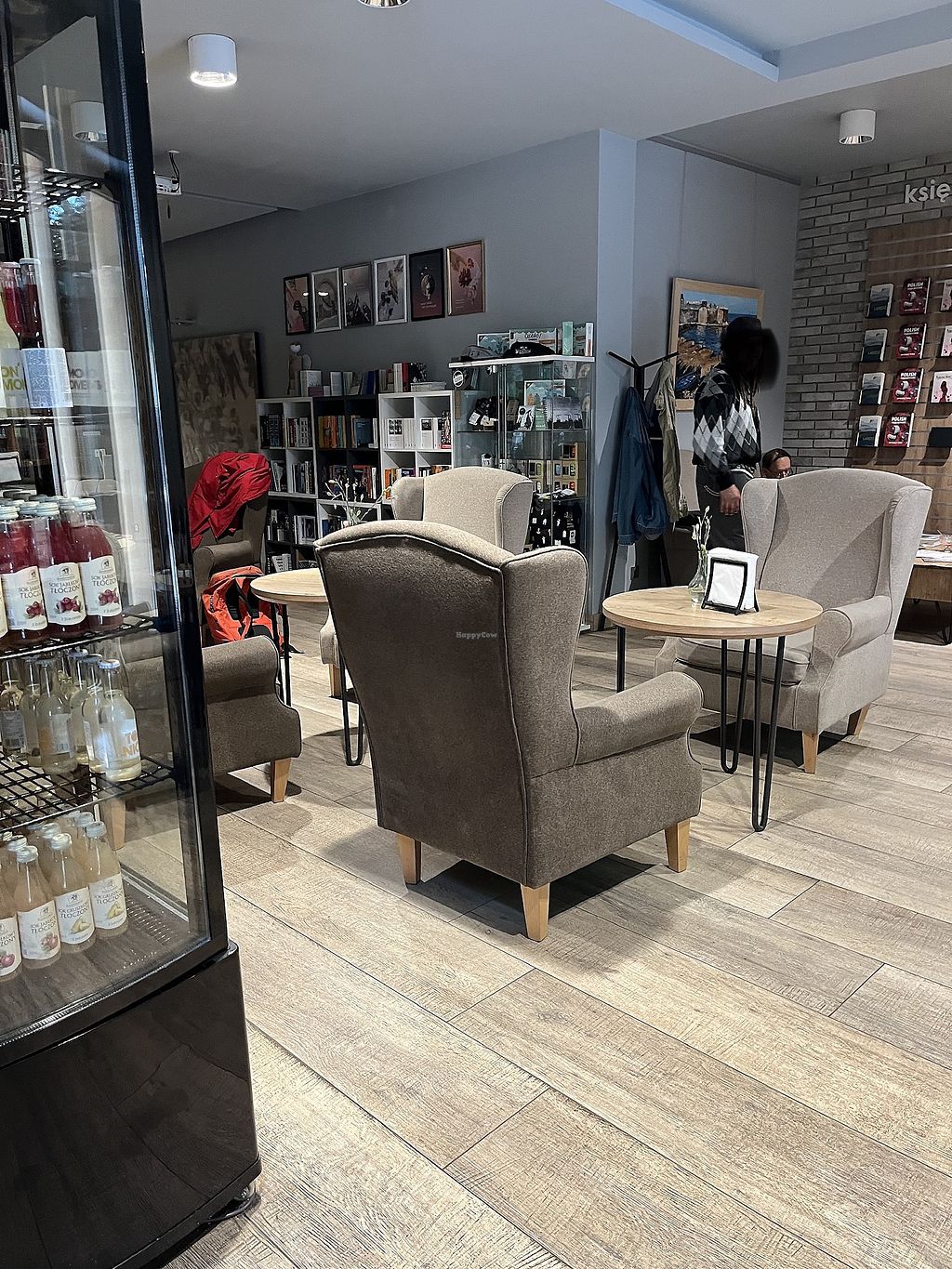We had a coffee with coconut milk and a berries smoothie with rice milk. All was really tasty and the big surprise was we didn't have to pay extra for plant based milk which is rare nowadays. The atmosphere is really nice, sitting surrounded by books, we read one about veganism called "Simple happy kitchen"- nice to see such books available in a non-vegan place.