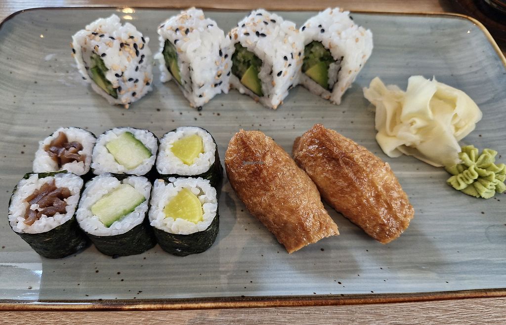 Serves meat, vegan options available. Sushi restaurant offering labelled vegan items such as cucumber maki, daikon maki, kanpyo maki, inariage nigiri, uramaki, tofu steak, miso soup, perilla seed soup and more. Open Mon-Fri 11:30-15:00, 17:00-22:00, Sat 12:30-22:00.