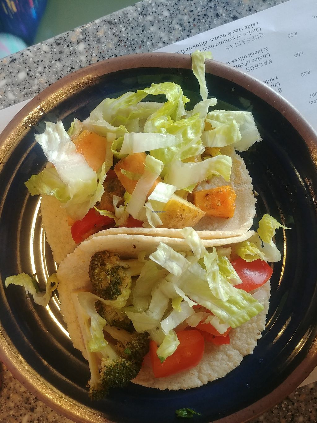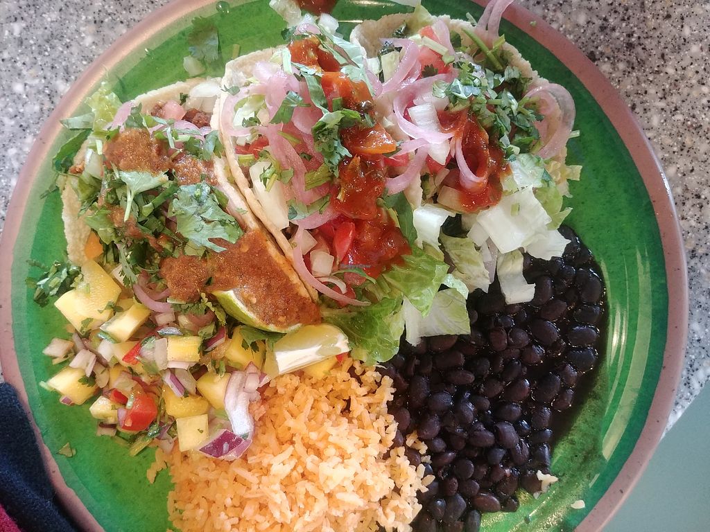 Most desserts are vegan including a whole menu of veggie options for tacos. Choose of tortillas as well (corn or flour). Heavenly Mexican vegan oasis and inexpensive!
