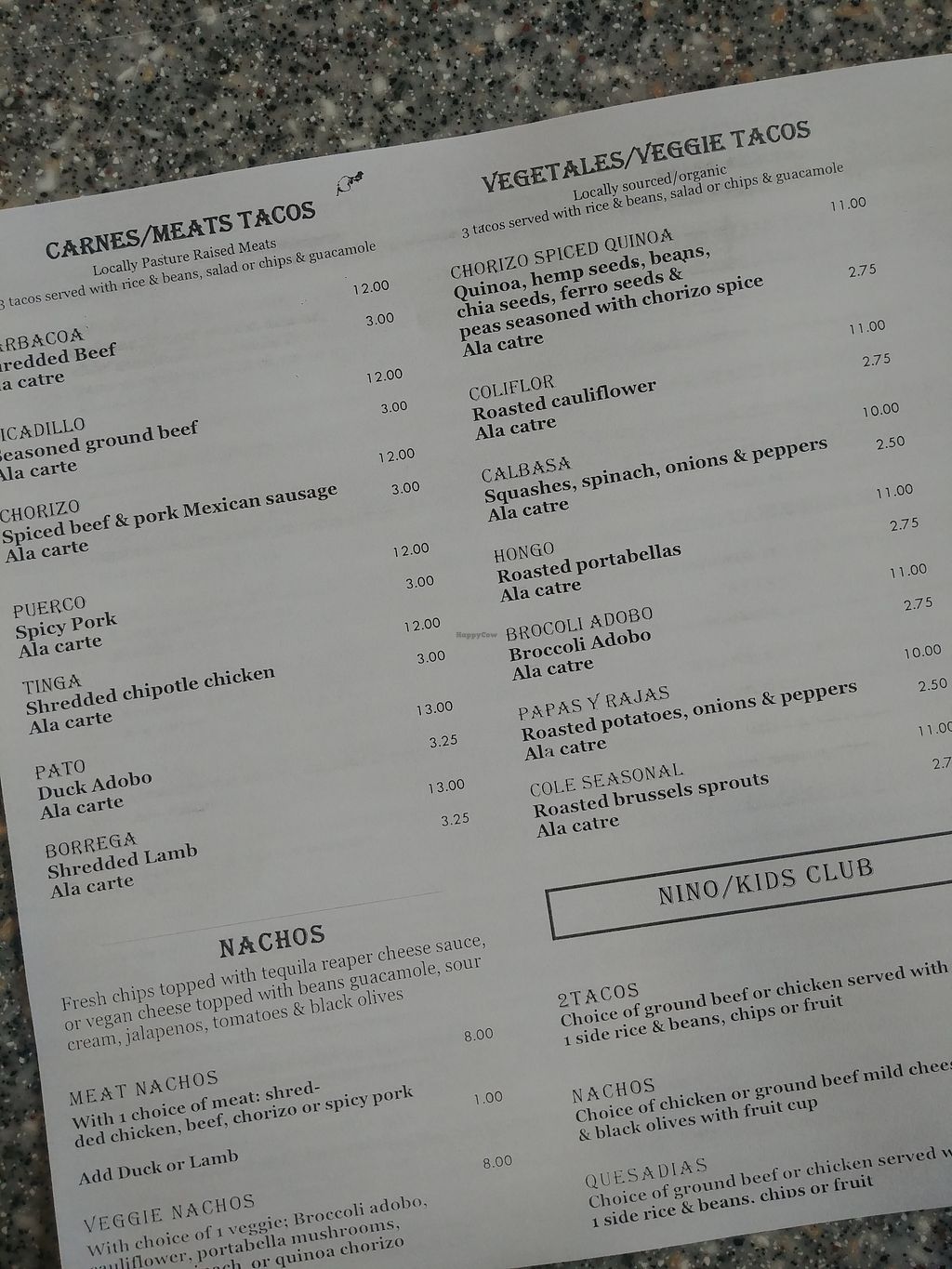 Read morePros: Several vegan options, Menu clearly marked, The best corn tortillas