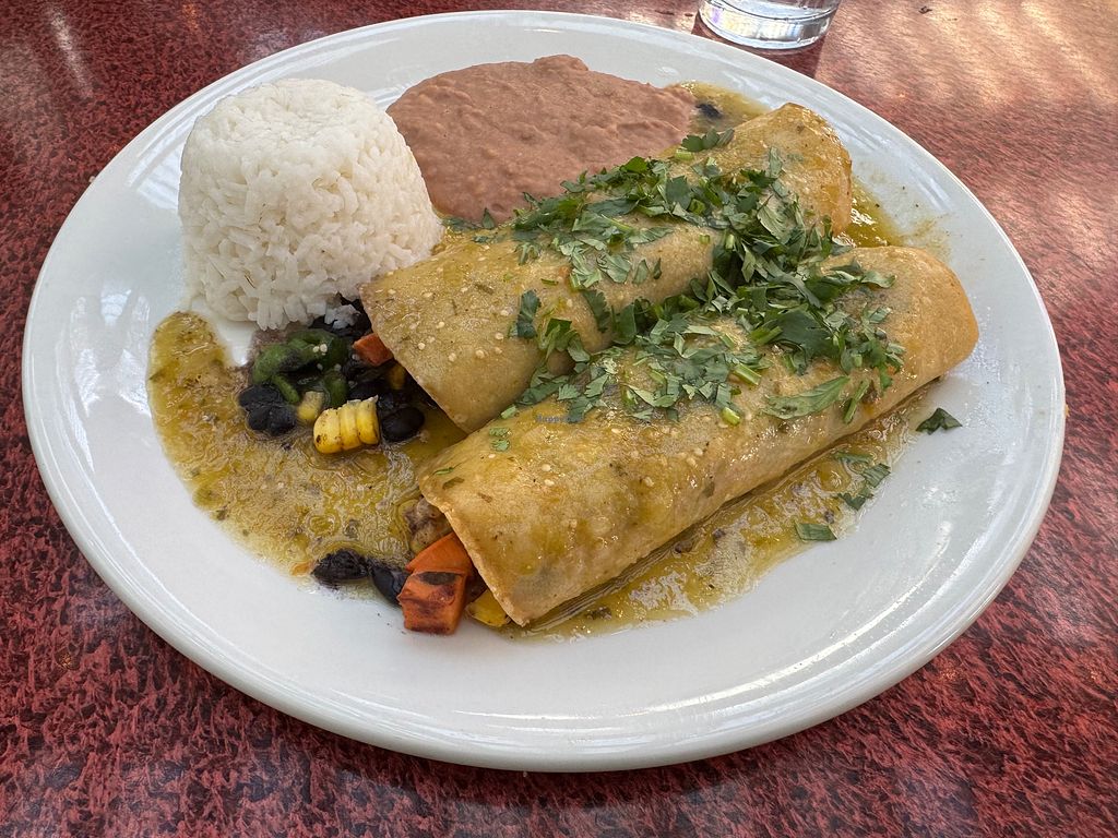I gave it a shot after reading this review and I would say it’s pretty good. I didn’t expect it to be but the veggie enchiladas were yummy. I put some salsa on the white rice and frankly it was delish. My wife had the chicken mole tacos (not vegan) and she loved them. The margaritas were strong too. I’d go back.