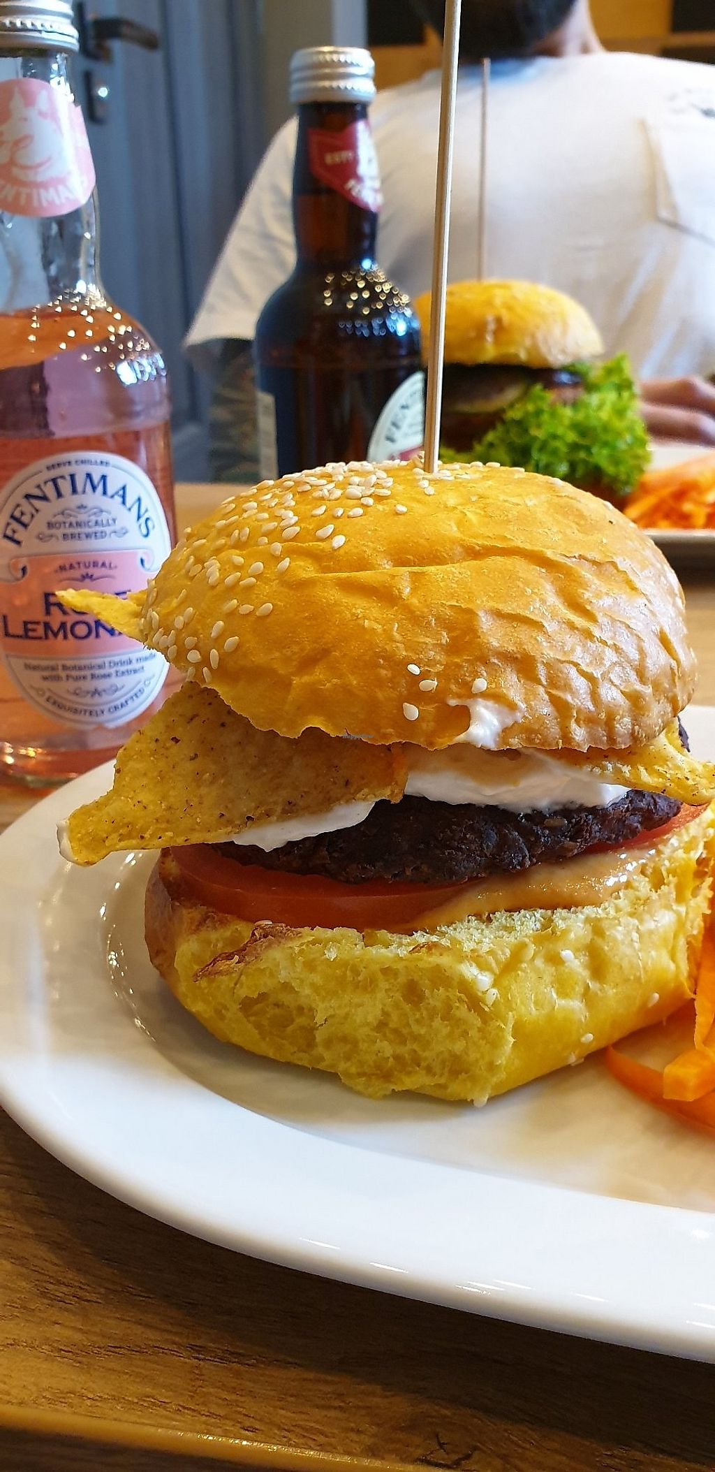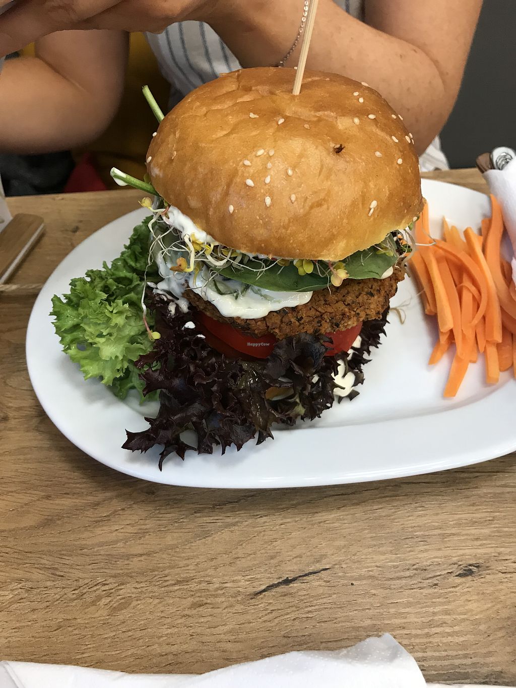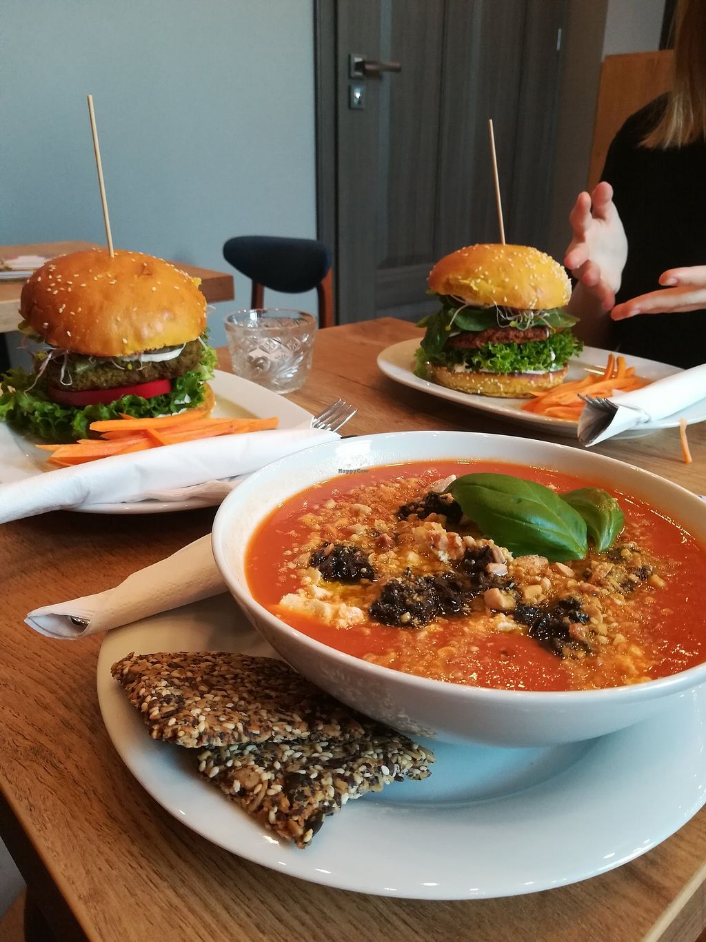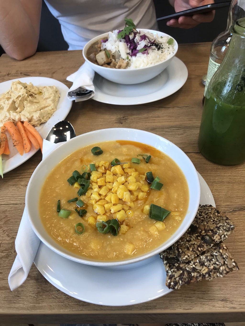 I really liked the corn soup. You don`t get that often and it was a tasty bowl of soup. The burger was amazing. The vegan mayo was tasty. The burger fill you up, you don`t need something else. My ricenoodle dish was fresh and tasty as well. I would come again.