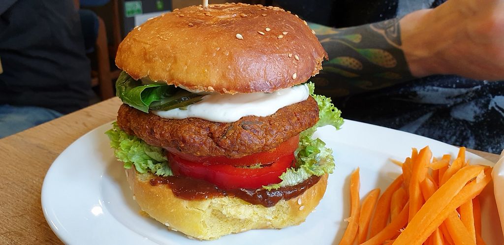 Vegan restaurant with several branches, this one est. 2019 is its flagship location. Serves vegan burgers, salads, soups, hummus, cookies, cakes, juice and smoothies. Reported closed May 2023.