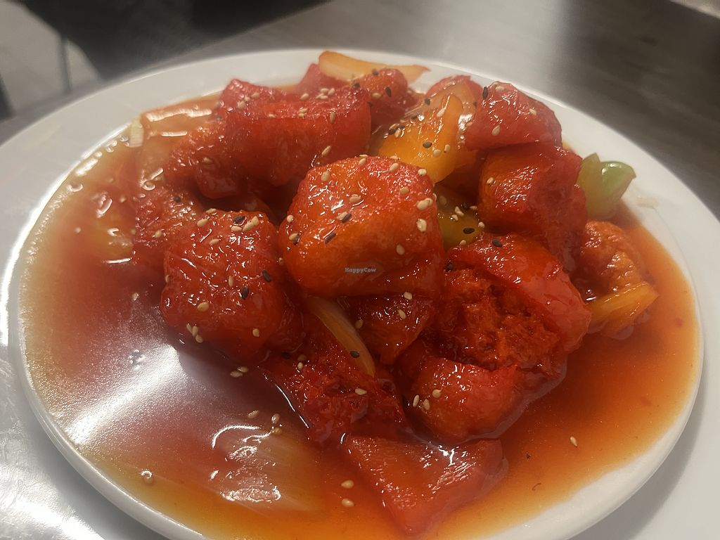 Serves meat, vegan options available. restaurant and Asian food store , they have a separate large Vegan menu tofu sweet an sour, Korean tofu or veg Bimi Bap and, tofu pad Thai. Open Mon 11:30-04:30, Tue-Thu 11:30-16:30, Fri-Sun 11:30-21:00.