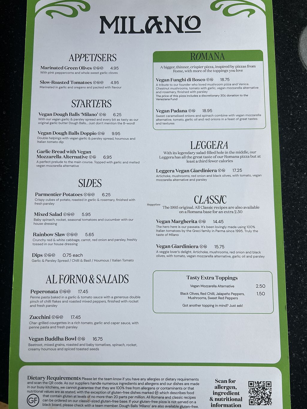 In Limerick on a Monday night, lots of places closed. Milano was a terrific choice, separate vegan menu with lots of choices.