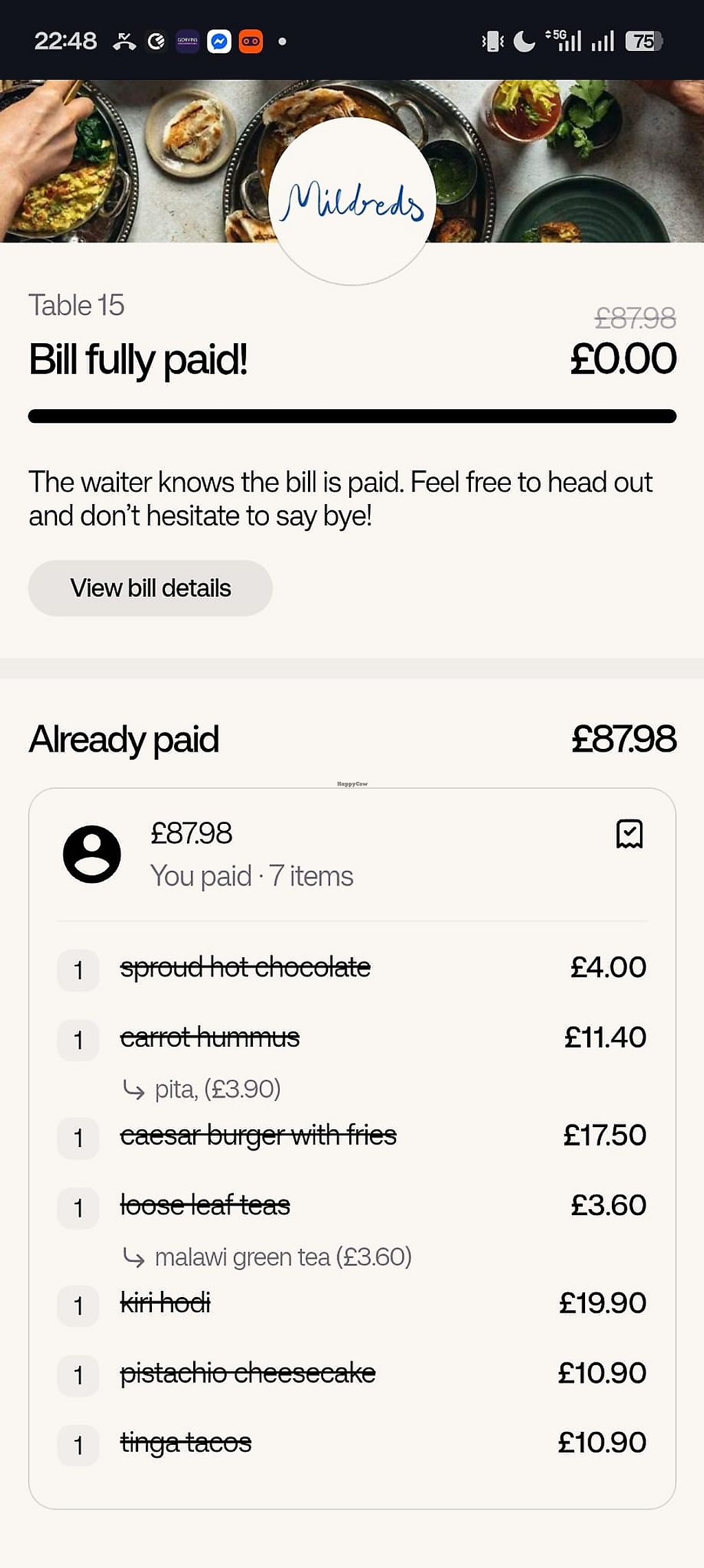I wouldn’t rush back to Mildred’s but overall it was a good experience.
