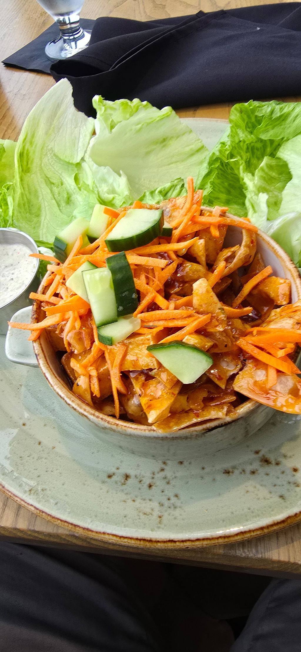 Food took forever. Ordered the mushroom soup and the portobello. The soup came after an hour. Then they brought out a second one(!) wich I sent back. Staff seemed super stressed and the place wasn’t even packed. One star for having a plant based part of the menu. This place wants to sell alcohol so I guess that could be the reason
