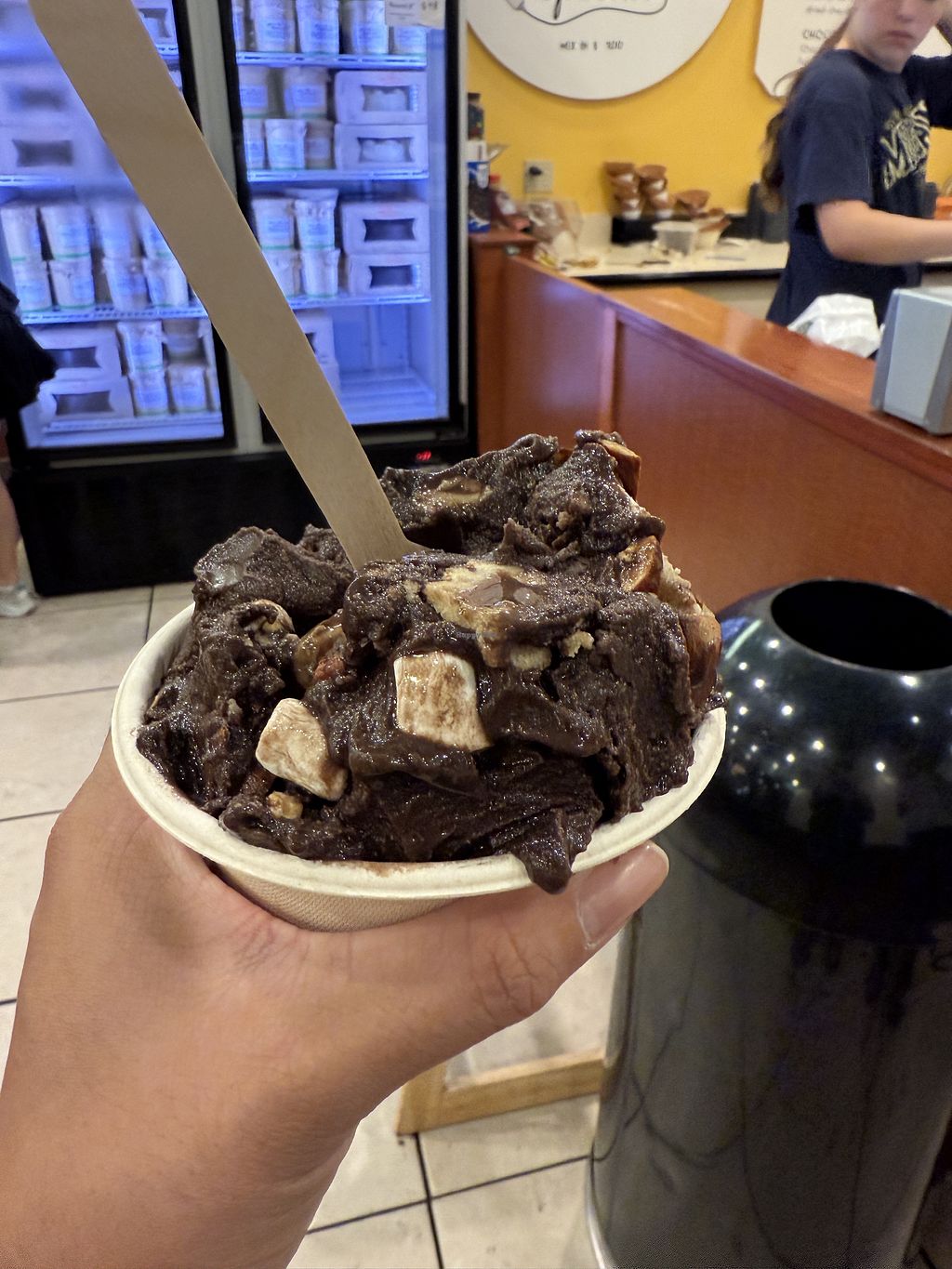 They have really great vegan ice cream options. My favorite is the vegan rocky road! They have a frost top (like Coldstone) where they mix the toppings into the ice cream.