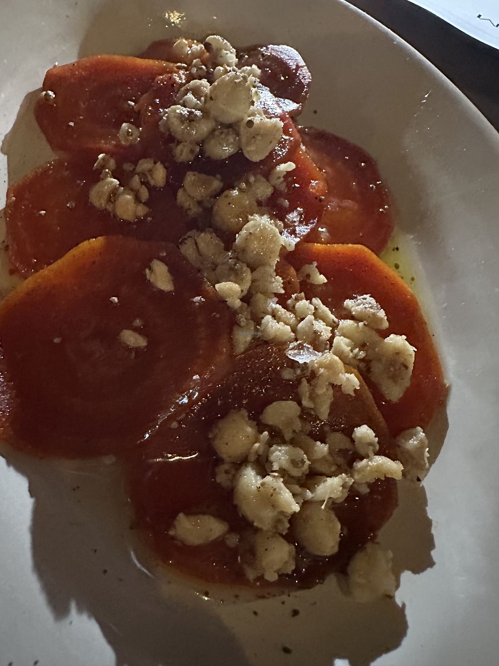 Ordered Roasted Badger Red Flame Beets, Bun Cha, Polenta Gratin, and Cornmeal Crusted Maitake. Ooof, everything was exceptional! It was a lot of food but good split between two. Most plates came out in waves, so it felt like prix fixe without being prix fixe and more customization over what you want. The prix fixe option looked good and seems priced reasonably well. Paired it all with the zero proof Cassia which was splendid!