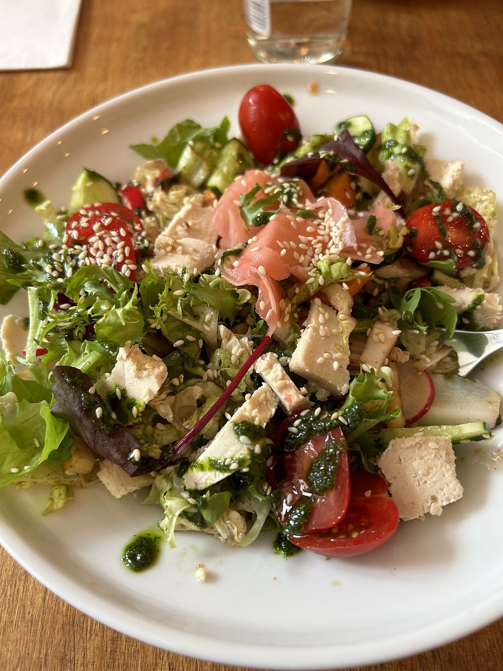 adorable dog, works at the restaurant, laid on my foot for a while it …