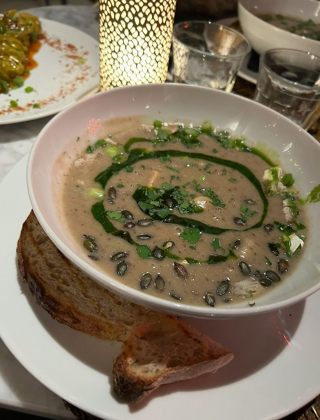 Vegan mushroom kroketten with passionfruit kombucha
