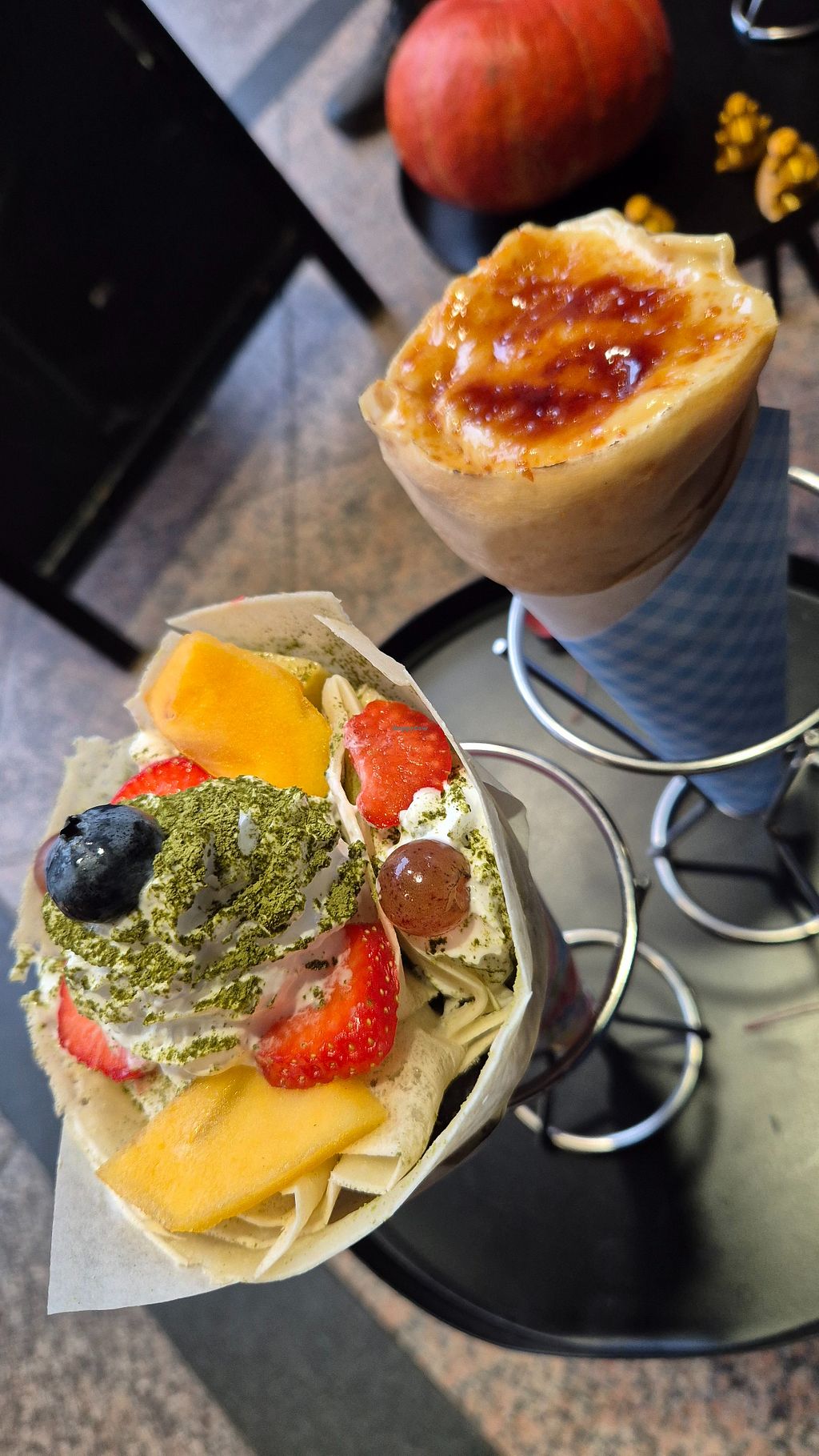 Traditional Japanese Crepe with Azuki beans, matcha powder and fruit