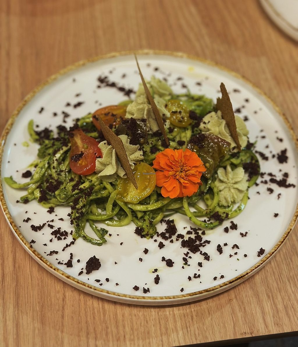 4.5 stars - beautifully plated, complex, not mainstream food, which is rare for a vegan rest. But not everything was very tasty. The burger - I wouldnt call it a burger, because the taste is very different and not for the better. The Saffran foam in the rice dish tastes like soap. But the potatoes with mushrooms was good and also the other potato dish. And the pink dip that comes with the burger was divine!