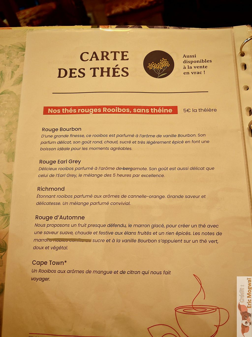 You'll find a wide range of teas, including a smoked tea that I'd already tasted at Jo and nana cakes.