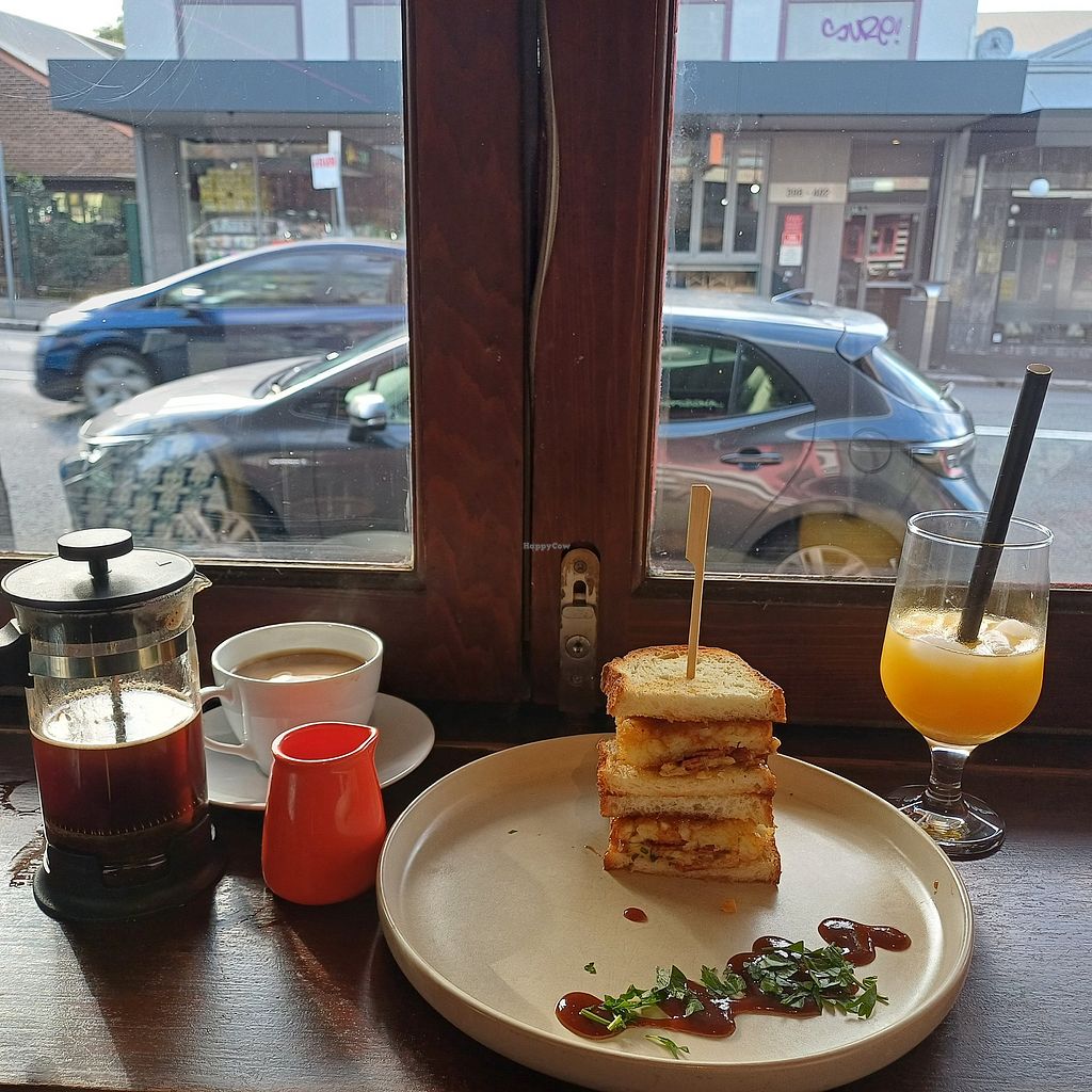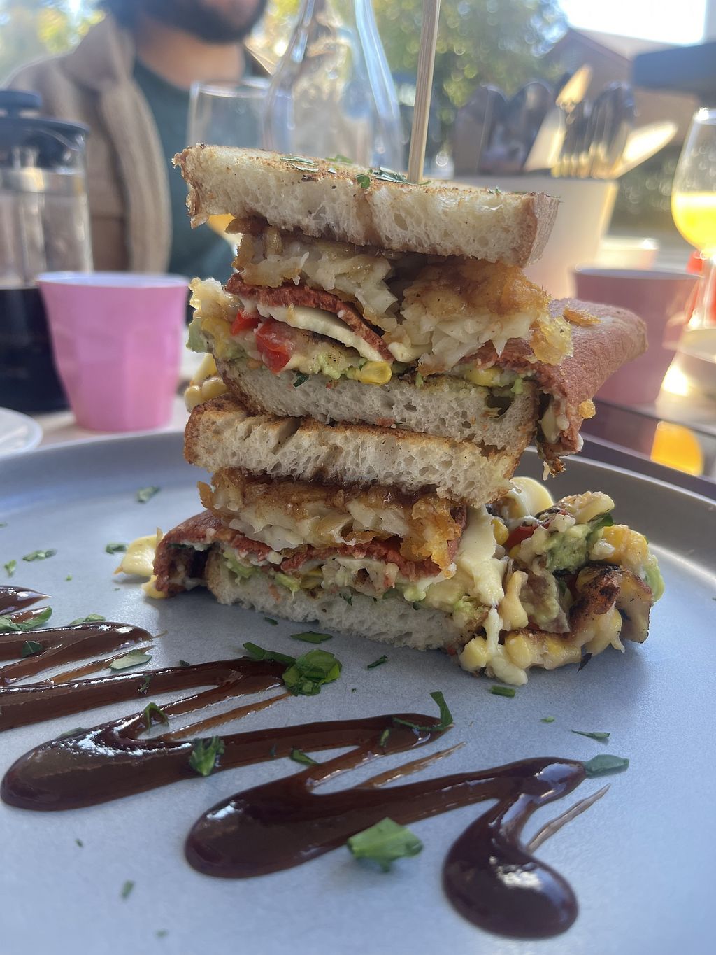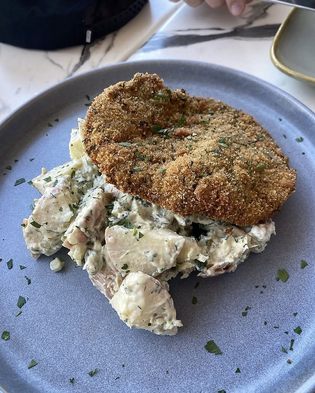 Chicken ceasar salad sandwich. Dry and overcooked and no ceasar dressi…