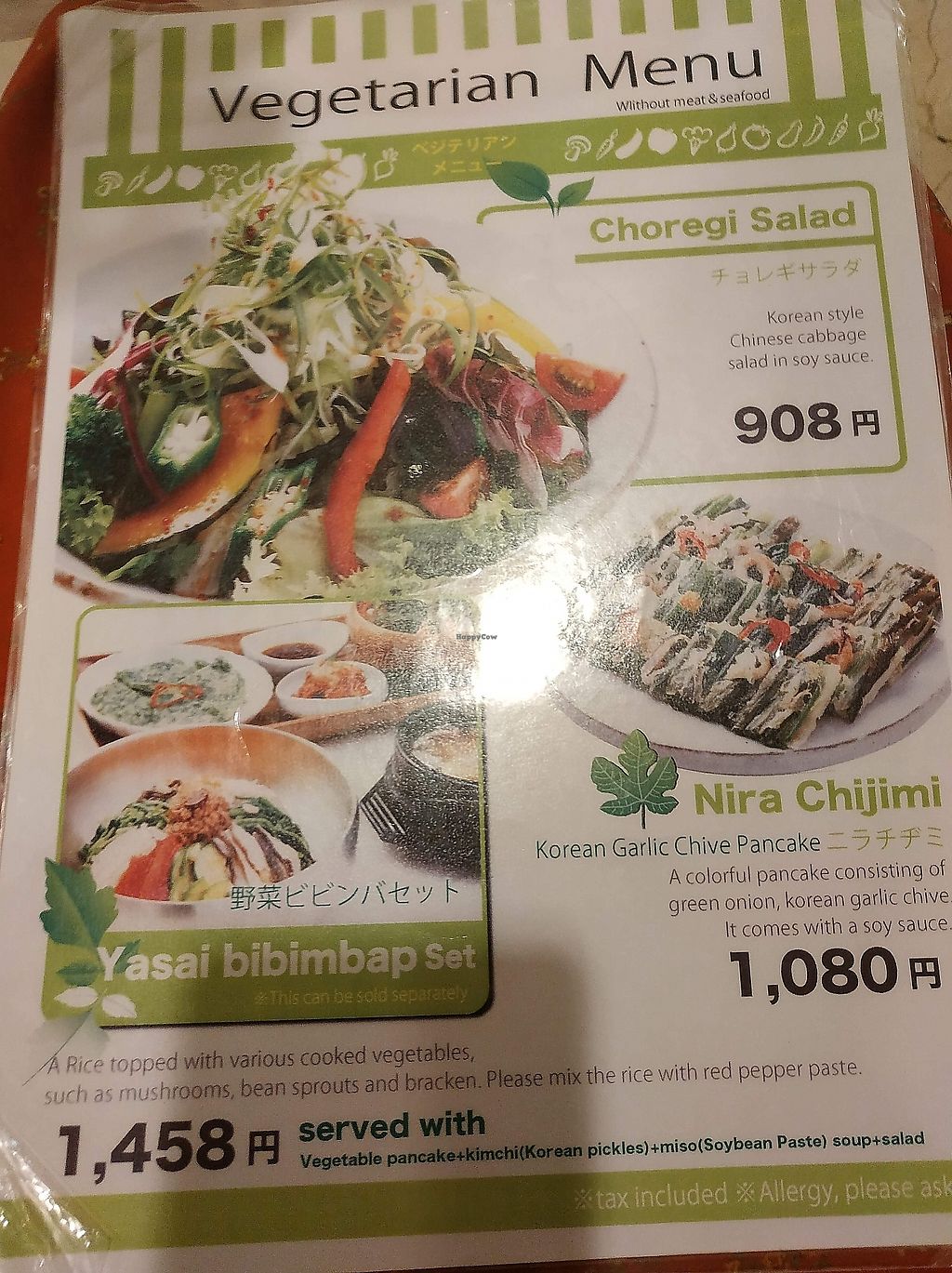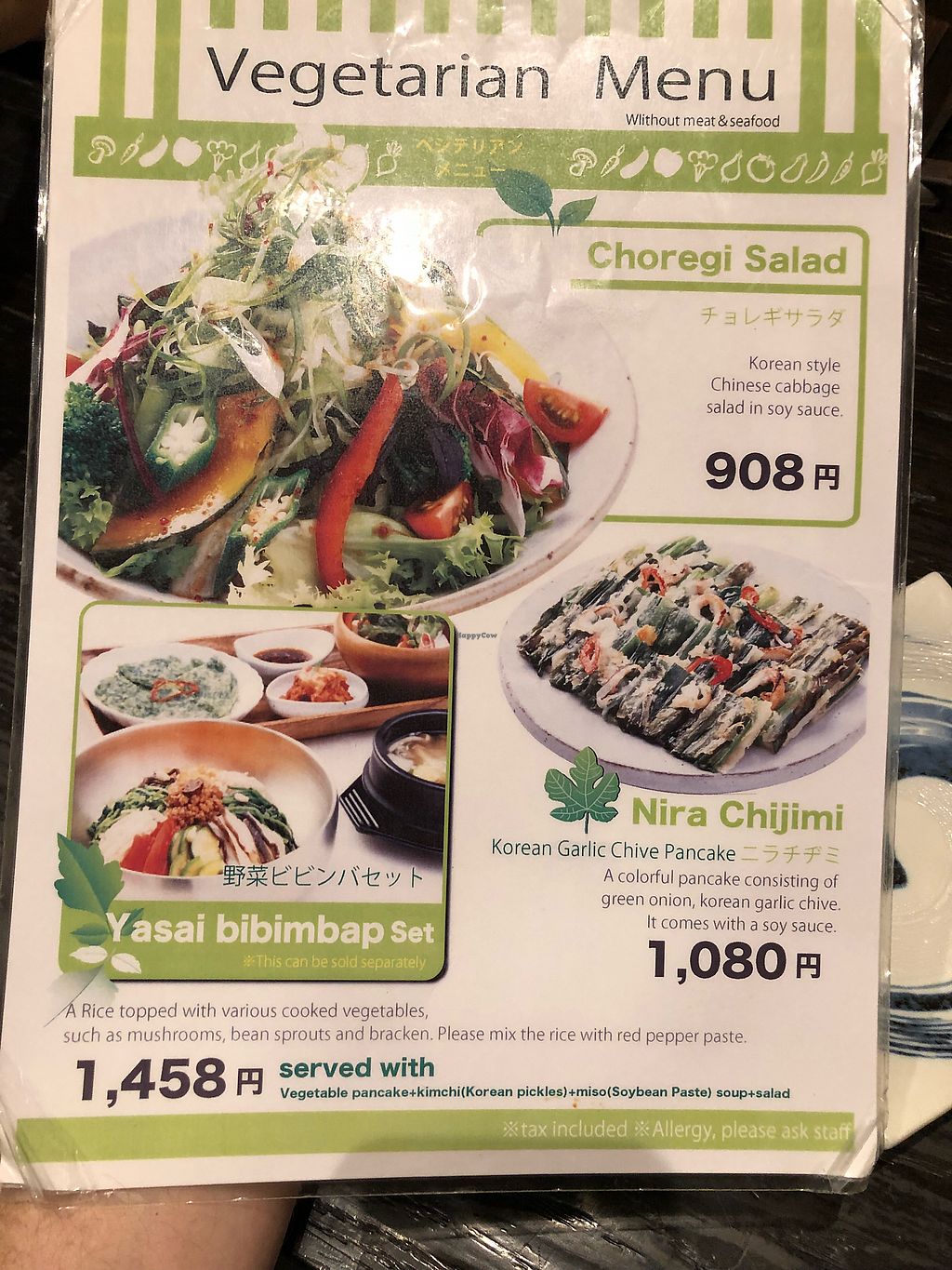 Serves meat, vegan options available. Korean restaurant at Kyoto Station where you could get a vegetable bibimbap. Removed Aug 2019 - dishes contain beef stock.