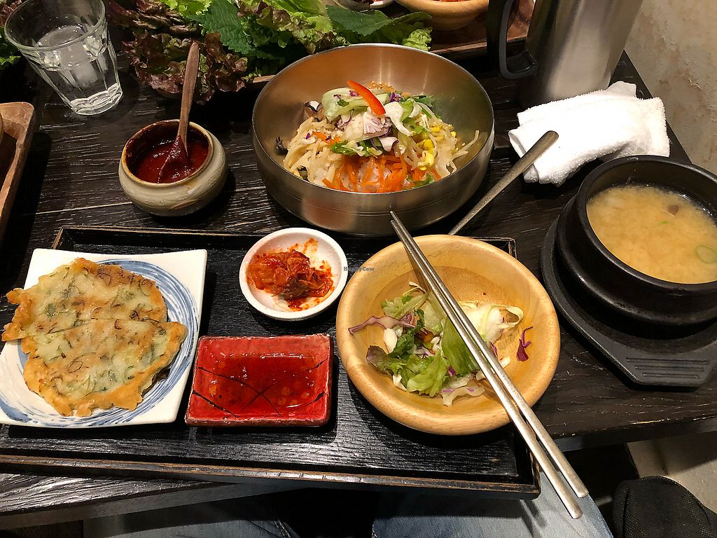 Read moreGreen onion pancake was nice and crispy. Bibimbap wasn't super interesting - red pepper sauce helped, but that was quite hot.