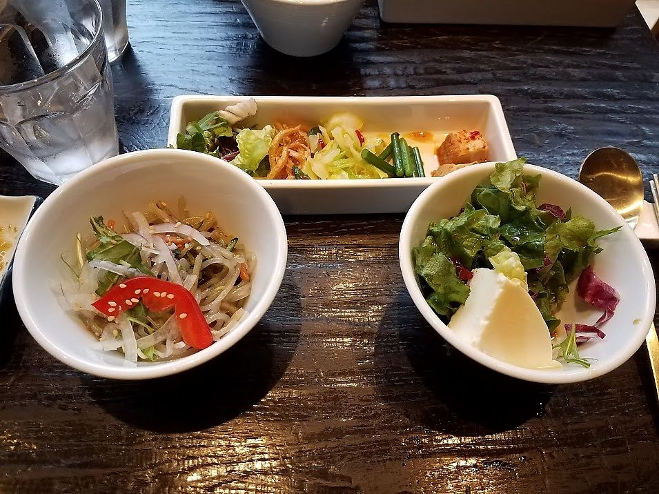 It's on the 11th floor of the jr itsen complex so out the way of commuters. It was busy when we arrived at they took our name and how many for but we didn't have too long to wait. Really popular. Staff very friendly and really good command of English. Our waitress new exactly what vegan meant and went over the dishes I could have. She also asked if I had any allergies. Food came pretty quickly and I had a salad instead of the onion pancake as that has egg in it.