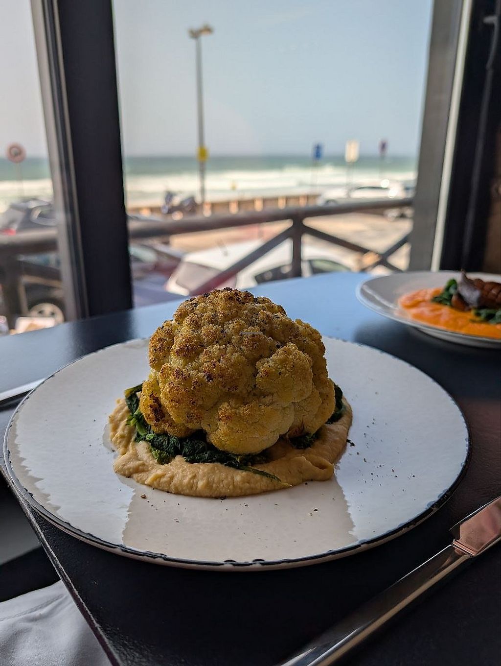 Serves meat, vegan options available. Restaurant on Praia Grande beach. Offers vegan dishes that include roasted cauliflower with hummus & turnip greens, Algarve-style carrots, pumpkin & lentil puree with king oyster mushrooms & baby spinach and piperade (typical Gascon & Basque dish) with white beans & caramelized onions. Open Wed-Sun 12:30-15:30, Wed-Sat 18:30-22:00. Closed Mon & Tue.