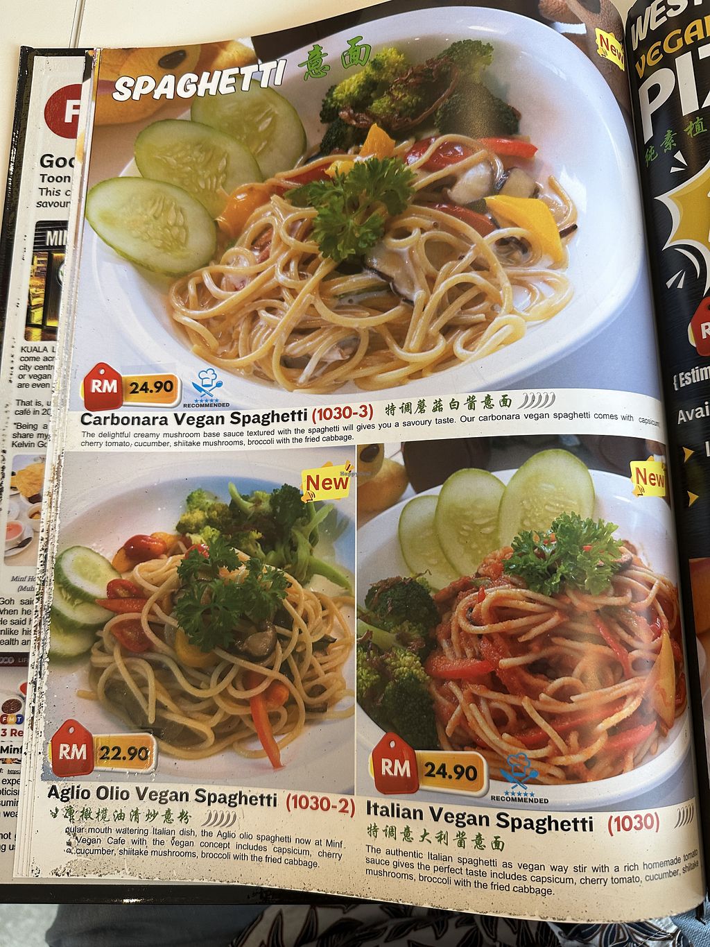 Extensive vegan menu