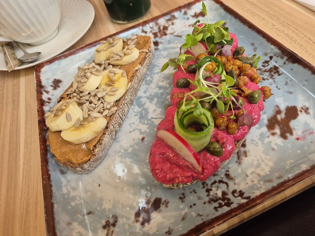 The menu has an extensive vegan section, with sweet and savoury options. We chose the lentil salad and the burger salad, and both were fresh and flavourful. For dessert we shared a pistachio chocolate tart, which was vegan and gluten-free. Such desserts can be usually very dense because of the coconut cream, but this version was light and fluffy, enjoyed it very much. Staff is very friendly and helpful and the coffee is also great. Will come again!