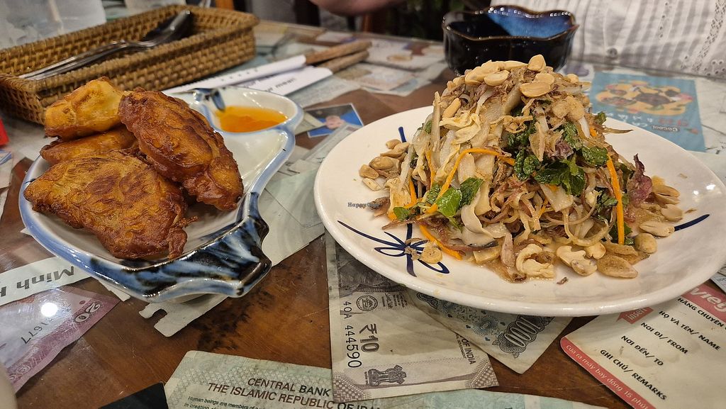 So far this has been the best vegan food we’ve had in Vietnam, clearly marked on the menu what is veggie and what is vegan, menu is huge so we just asked for recommendations, we had the tofu skin salad, fresh spring rolls, stuffed tofu and mushrooms, the mains were so different and unlike anything we’ve eaten in Vietnam so far and delicious. Everything gets bought out when it’s ready. Really great food, we’ll be back for seconds.