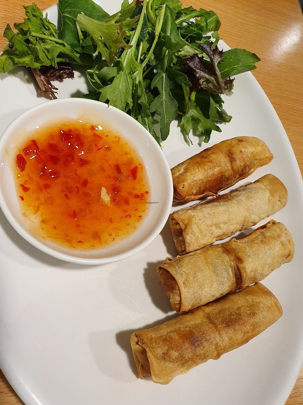 Entree was spring rolls and pancake.