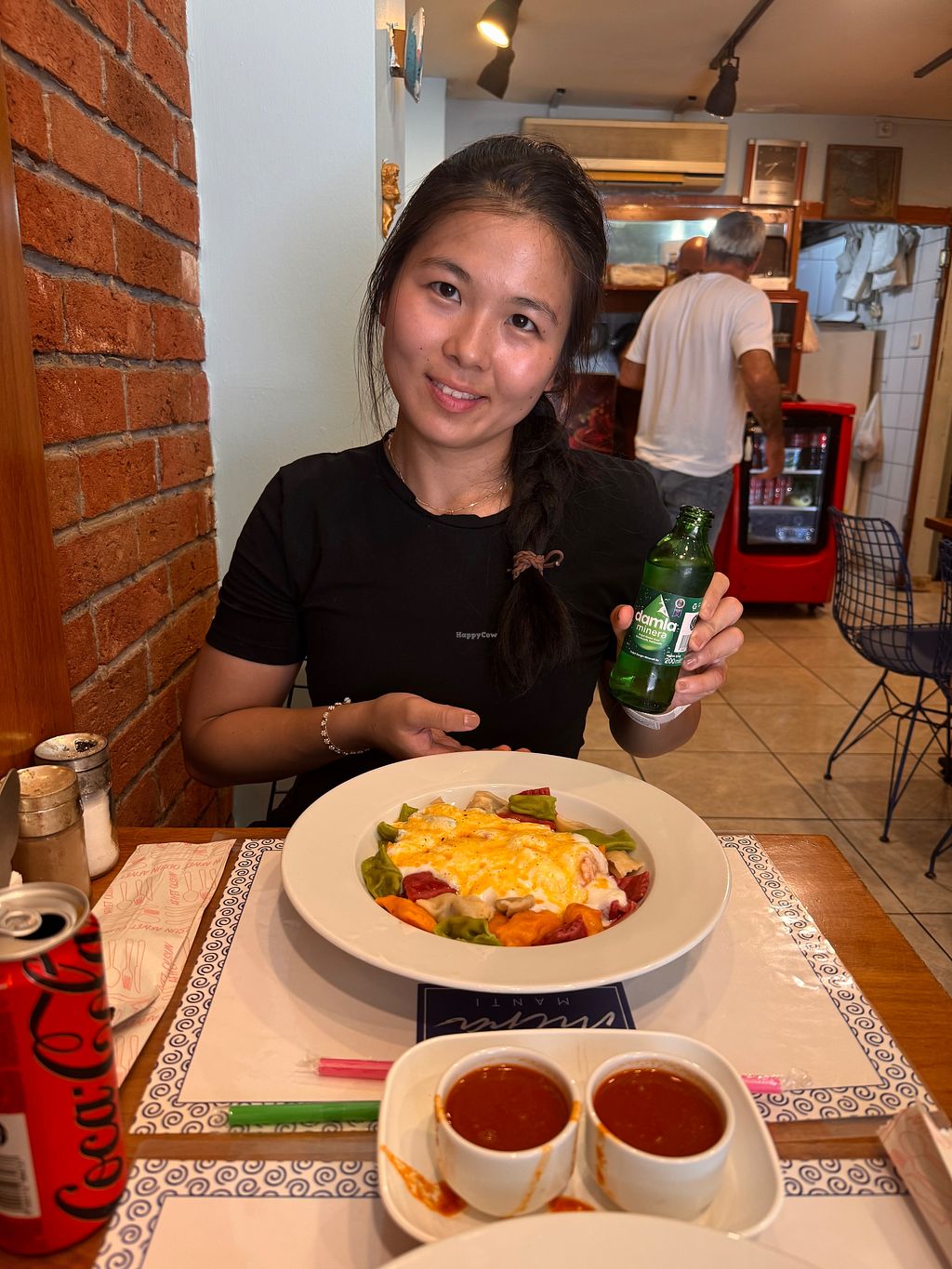 Personnel très gentil ! Vous pouvez y trouver de la soupe et forcément des mantı avec la sauce, le yaourt vegan qui vont avec le plat.