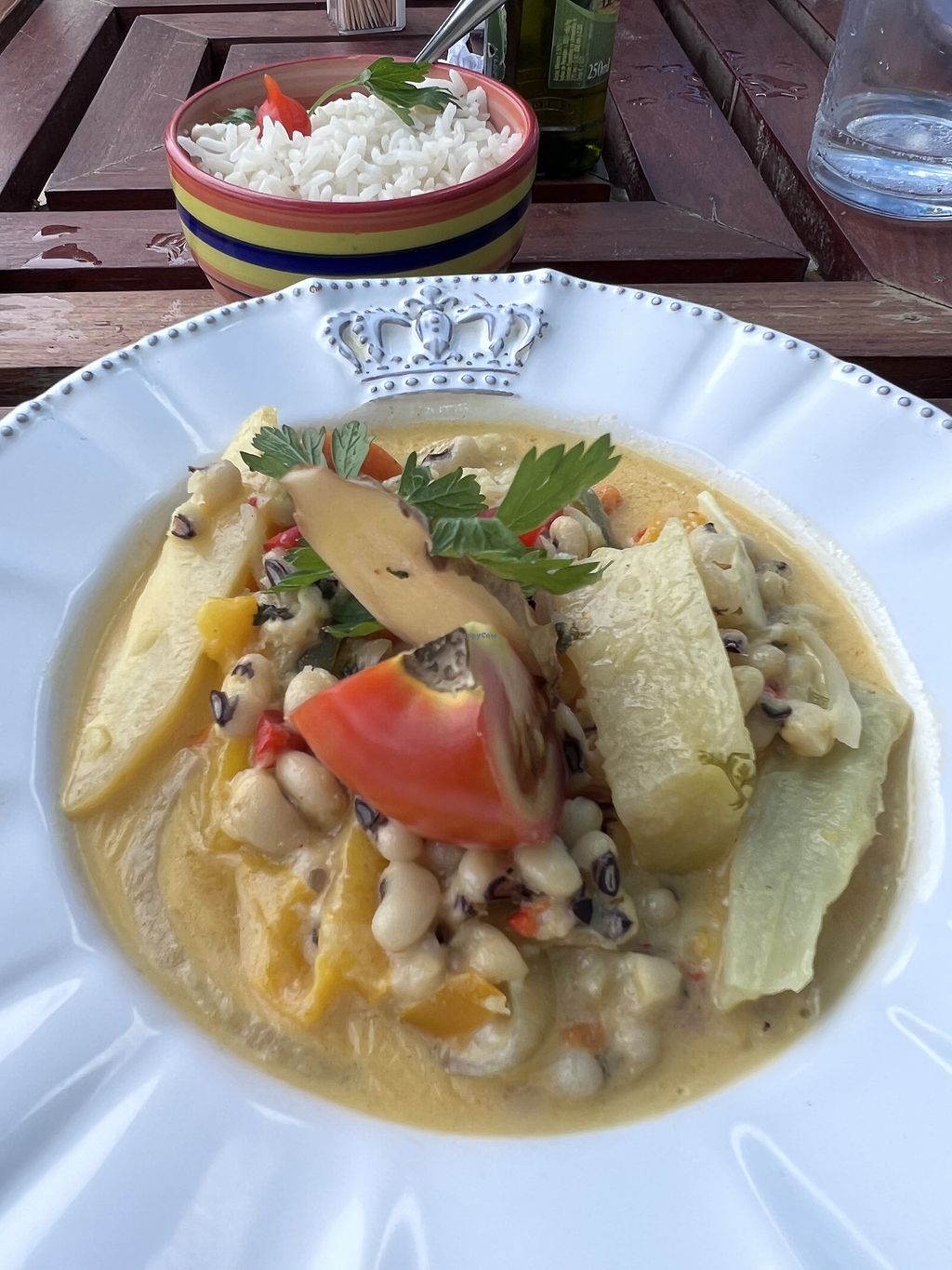 Con mi pareja pedimos para cenar Moqueca vegana y Curry vegano. Ambos platos eran deliciosos y muy bien preparados; y ambos sacian. Prácticamente no hay opciones veganas en Praia do Carneiros y menos aún que se ofrezcan platos bien preparados. Este restaurante vale la visita si sos vegano. Además es muy bonito.