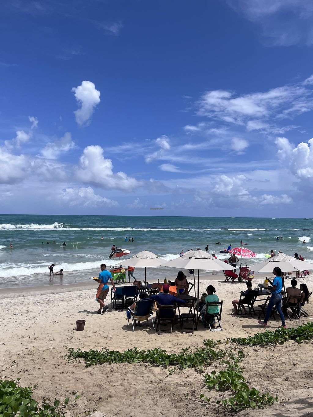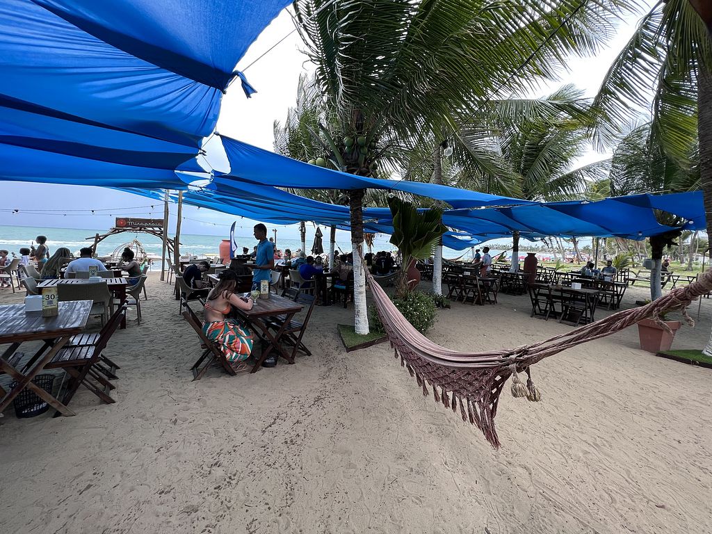 Pros: Opção vegana e opções vegetarianas, Ambiente à beira-mar, pé na areia