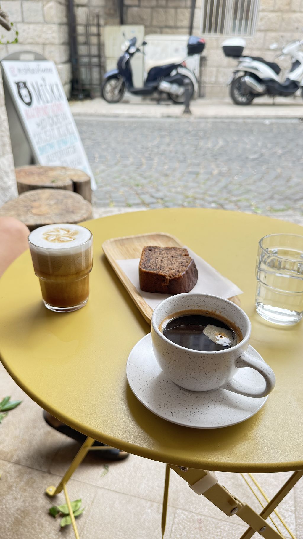 Big cappuccino on almond milk and pay porridge on coconut milk
