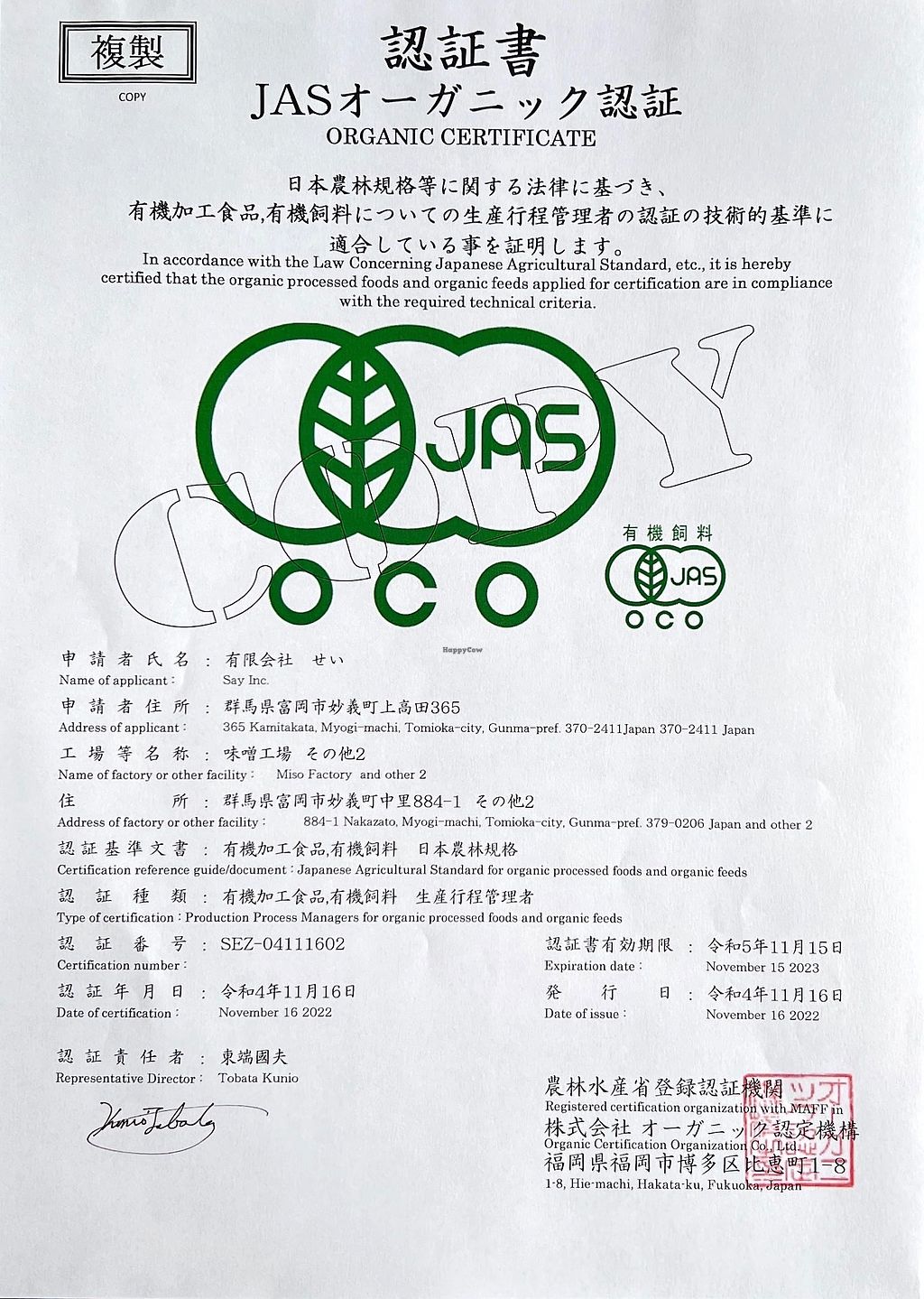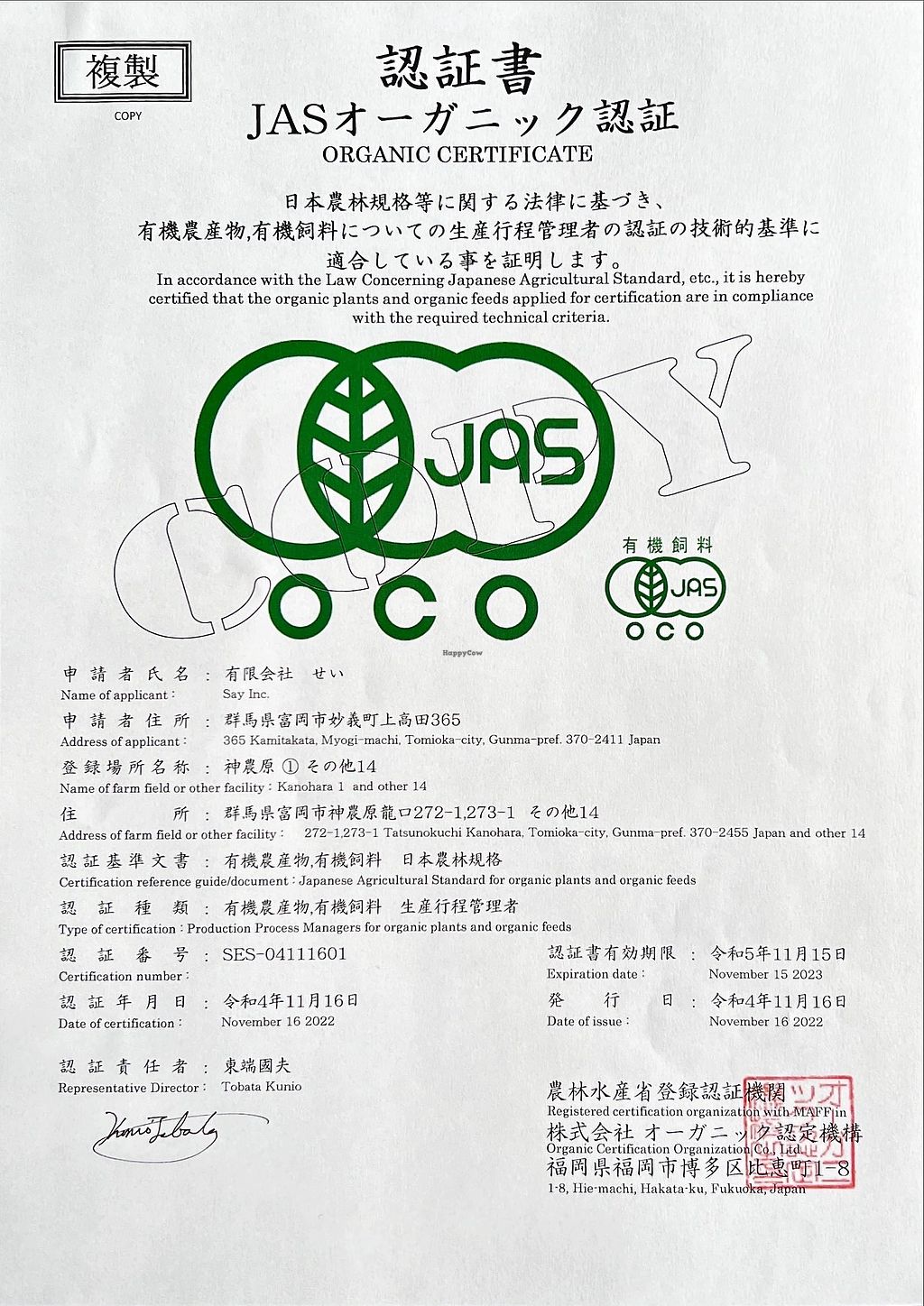 Kosha Japan certificate 2023