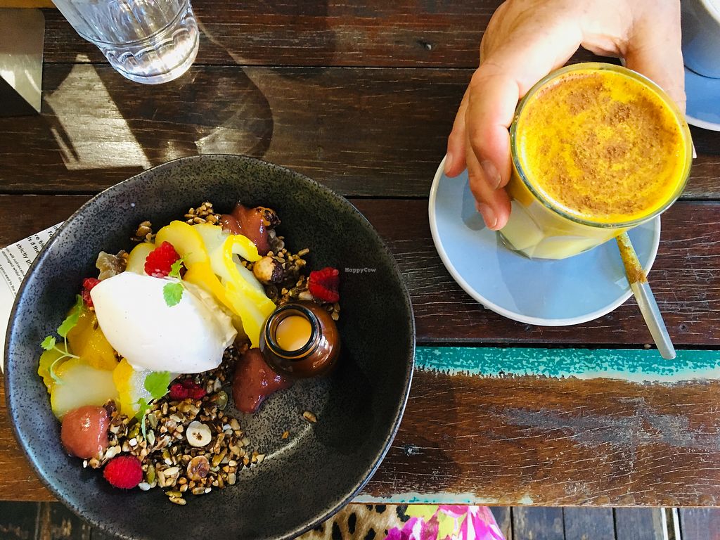 Granola and turmeric latte