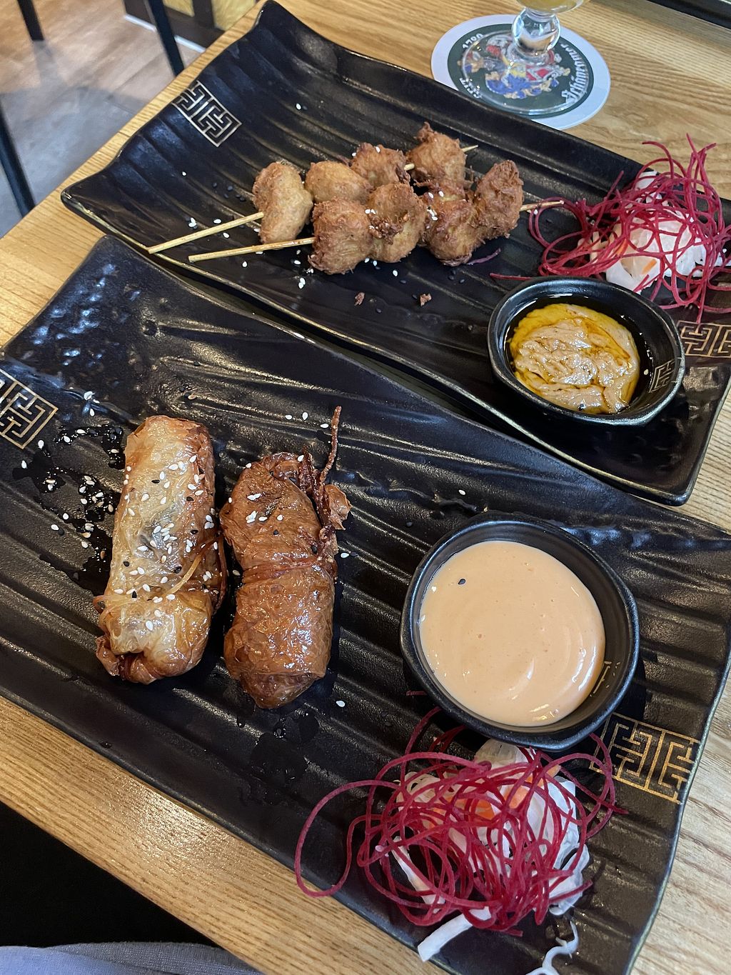 Vorspeisen: Vegan Yakitori & Tempura Vegan Gambas