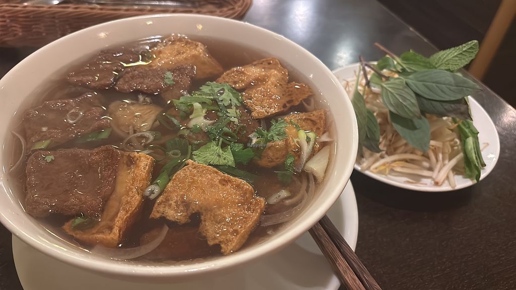 Worst vegan food I have had on my trip in Europe. Had the vegan pho and 2x different dumping dishes and they were all gross. The dumplings had this dry paper texture with little to no filling and the pho was bland. The tofu and seitan in the pho was like pre bought cheap fake meat. Service was not good either. I suggest going down the road to one of the other vegan Vietnamese places instead.