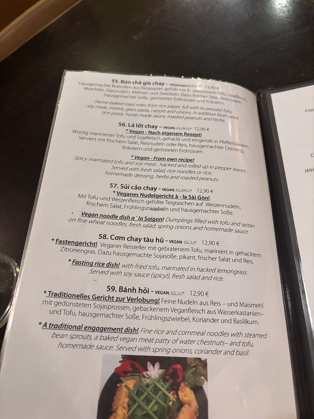 This restaurant serves authentic South-Vietnamese food, featuring exotic spices and fresh herbs, which are not common in Germany. They offer a number of vegan dishes - excellent and tasty, overall.