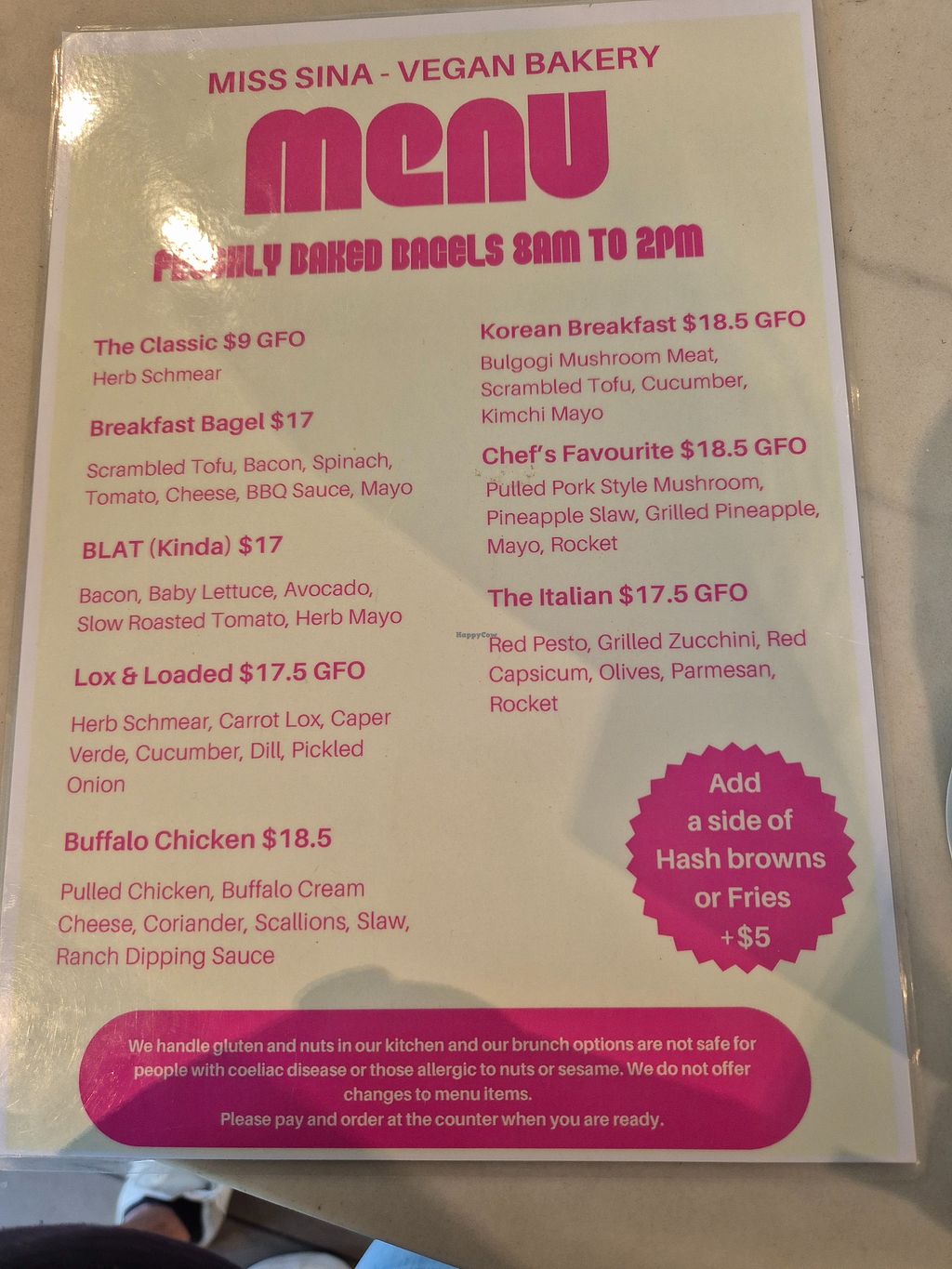 Really love walking into Miss Sina's and seeing the wonderful sweet treats in the glass cabinet. We ordered some breakfast with a side of Margherita Pizza, couldn't resist. The Farmer Scramble was very tasty but would have been good to have had the baked beans alreasy included rather than a side option. The Big German Breakfast wasn't really that big, and it was a bit pricey at $25. However we still enjoyed it and would go back for the dessert that we didn't have room for.