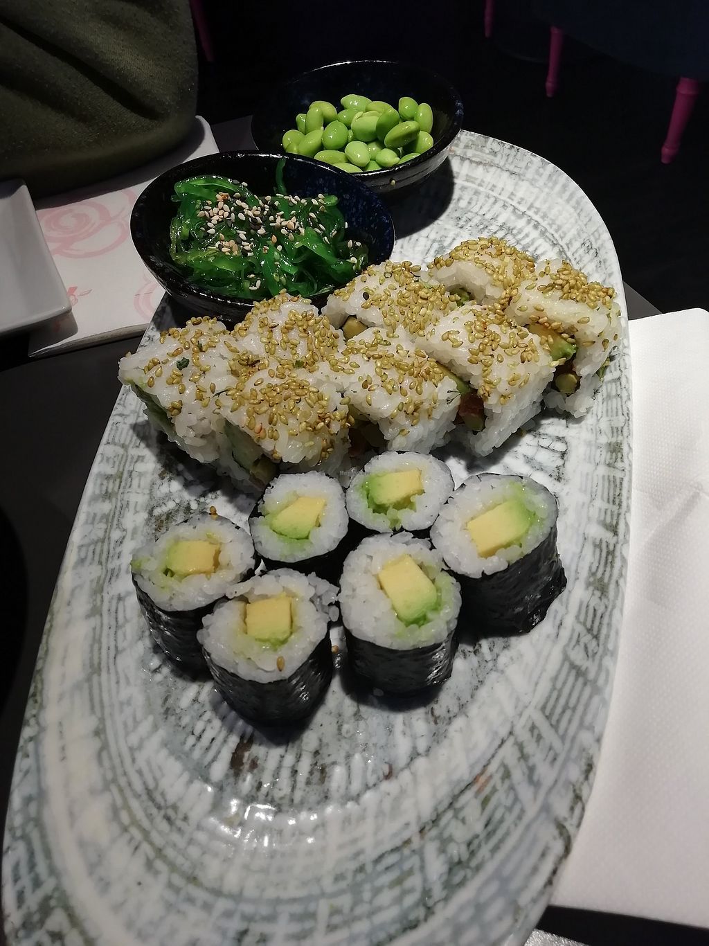 Hay una carta solo de sushi 100% vegetal y la verdad que muy completa. Muchos de los platos de sushi llevan salsas o fritos como los heura buns, lo ideal es coger algunos de cada y no todos los rolls/platos q sean fritos o con mucha salsa.