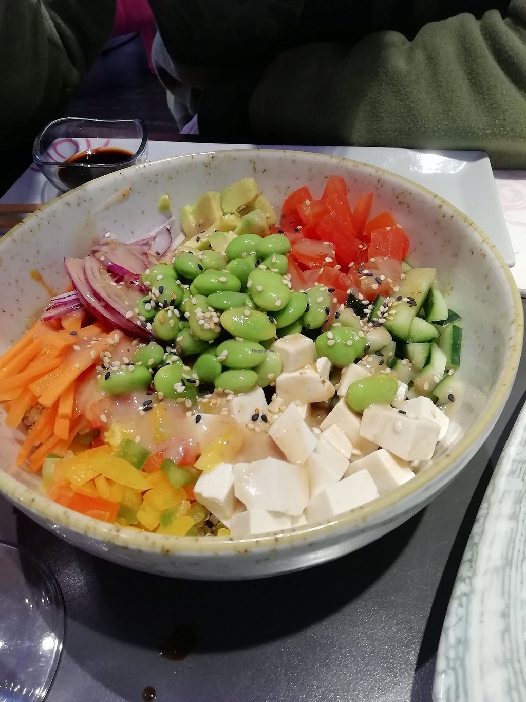 Serves meat, vegan options available. Sushi chain based in Spain offering vegan sushi, yakisoba, rice / quinoa plates with meat alternative Heura, and more. Open Mon-Sun 12:30-23:00.