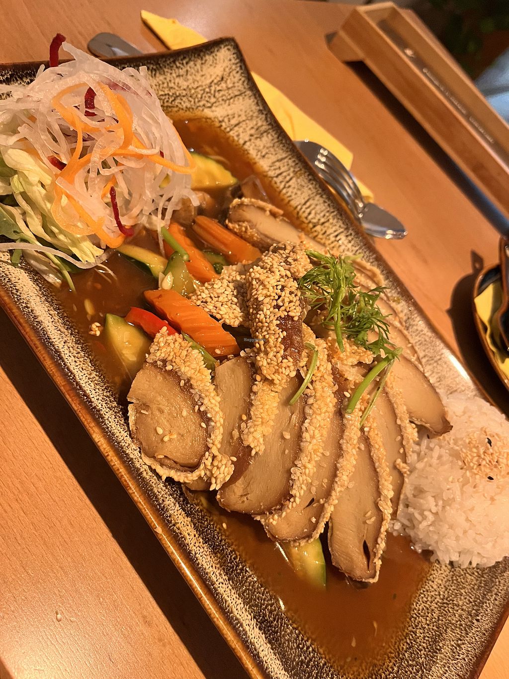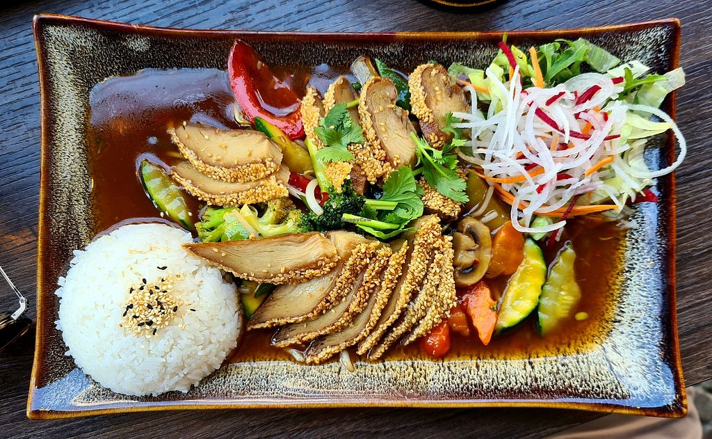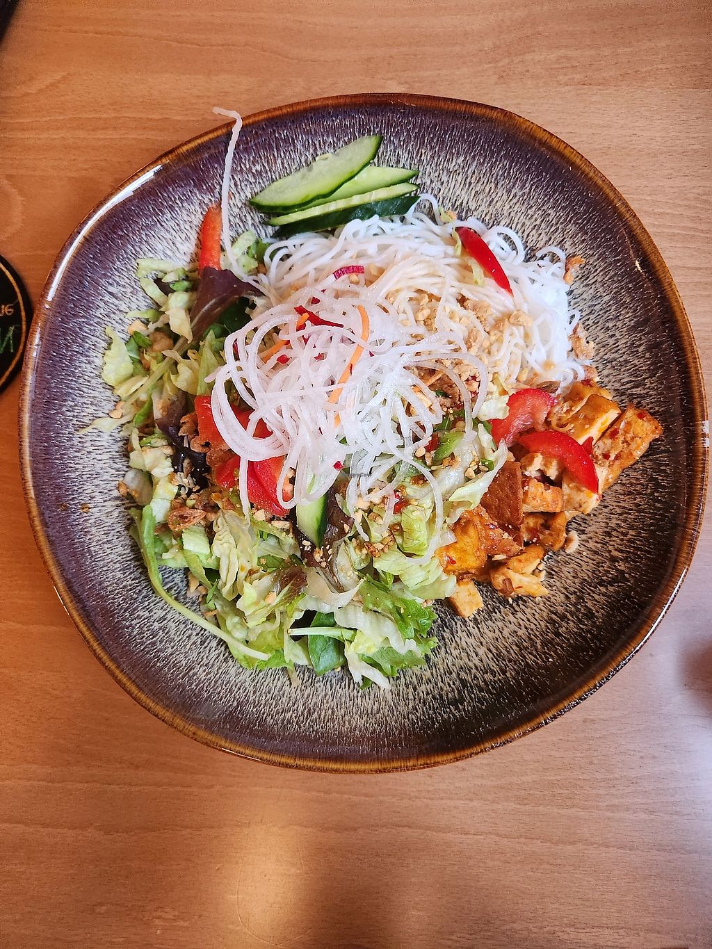 Udon-Nudeln Xao (fried udon with vegetables, seitan and tofu)