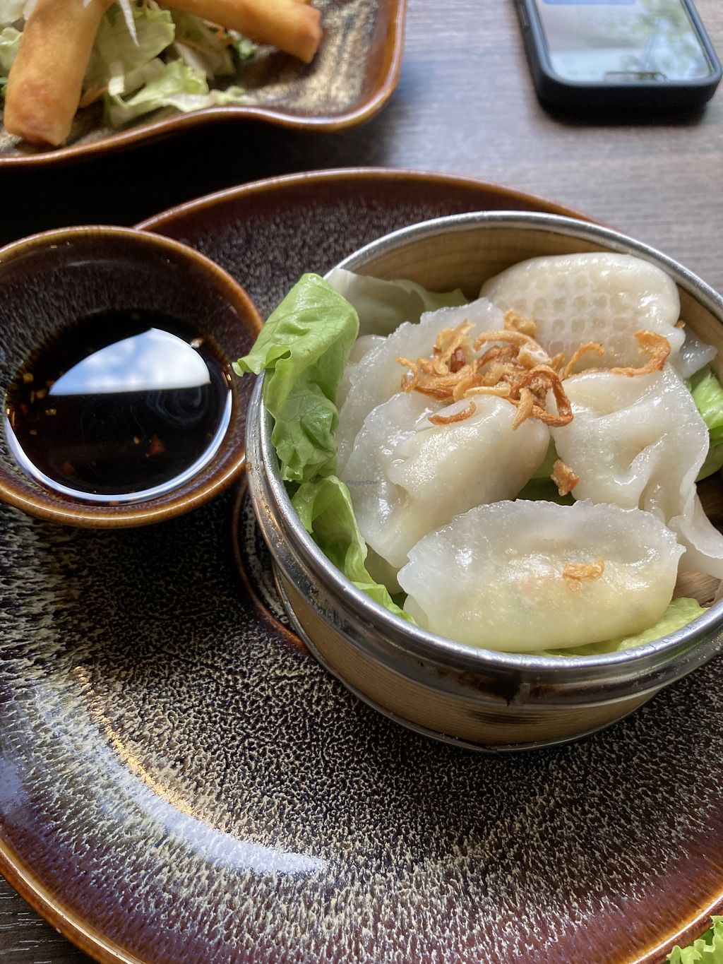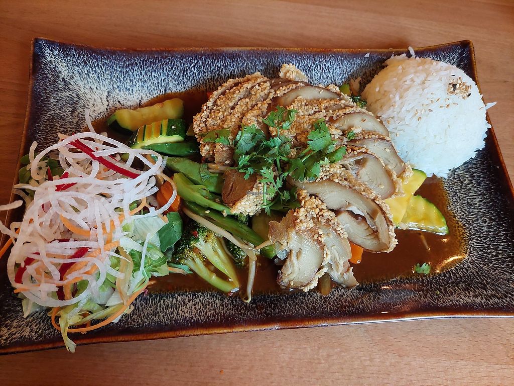Com Sot Nau Den (no. 53) with duck, dark sauce, veggies, rice (13.9€)